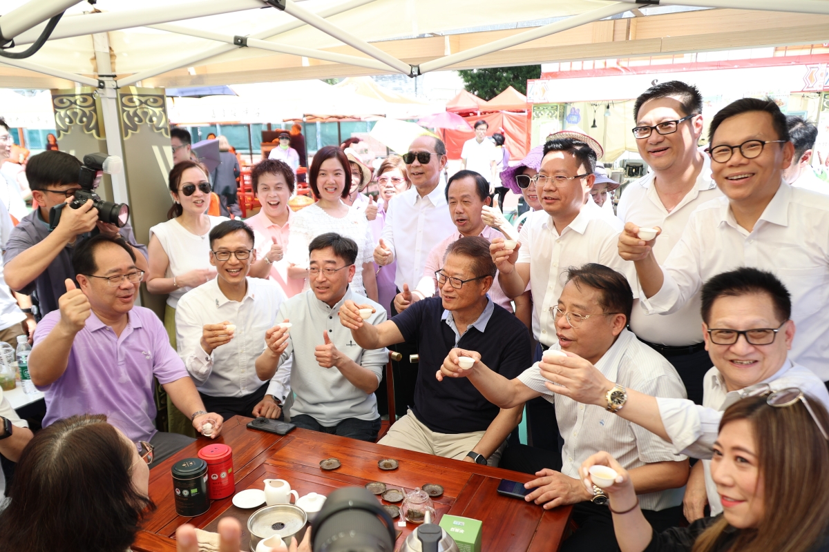 主辦方提供 陳茂波司長品嚐多款潮汕特色飲食,包括潮州魚蛋和牛丸、潮式鹵水等,以潮州話盛讚“好好食,個個食”,並與特別喜愛功夫茶的高永文醫生觀賞沏茶過程,體會潮汕文化的獨特韻味,高永文醫生更盛讚單叢蜜蘭香茶香味濃。陳茂波司長在現場攤檔購買羊肚菌、五指毛桃牛大力祛濕湯包、腐乳餅和雞仔餅等,在國慶節刺激消費、振興本地經濟。 陳茂波司長不時以潮州話與街坊打招呼和交談,與市民合照和分享美食,與民同樂,並到“梭船”裝置、功夫架等打卡點拍照,最後更以潮州話祝賀大家“國慶節快樂”。 “潮玩 X 潮IN”潮汕文化嘉年華免費入場,設有超過20個攤位,集食、玩、買於一身,旨在慶祝國慶和弘揚中華優秀傳統文化,同時讓商戶銷售潮汕特色產品(例如牛肉丸、潮式鹵水、豬肉卷、鴨屎香檸檬茶等)、香港本地特色產品(雞蛋仔、蛋撻、文創產品等)。 潮汕文化嘉年華設有多個特色打卡位,吸引公眾拍照留念,包括別具潮州特色的“梭船”裝置。適逢第十五屆全國運動會將於下月開鑼,今次活動特設4個以十五運會為主題的互動攤位,讓公眾率先感受熾熱的盛事氣氛。 今次活動通過一系列沉浸式“潮式”體驗,為市民呈現一場兼具文化底蘊及味覺享受的盛宴,讓大眾親身感受潮汕文化的獨特魅力,進一步加深對中華優秀傳統文化的認識與認同,從而增強民族自豪感及對國家的歸屬感。 (完) 【編輯:徐嘉儀】