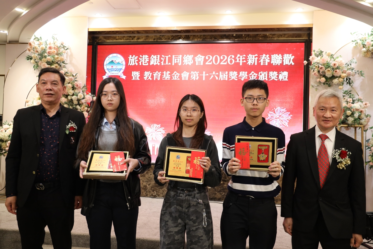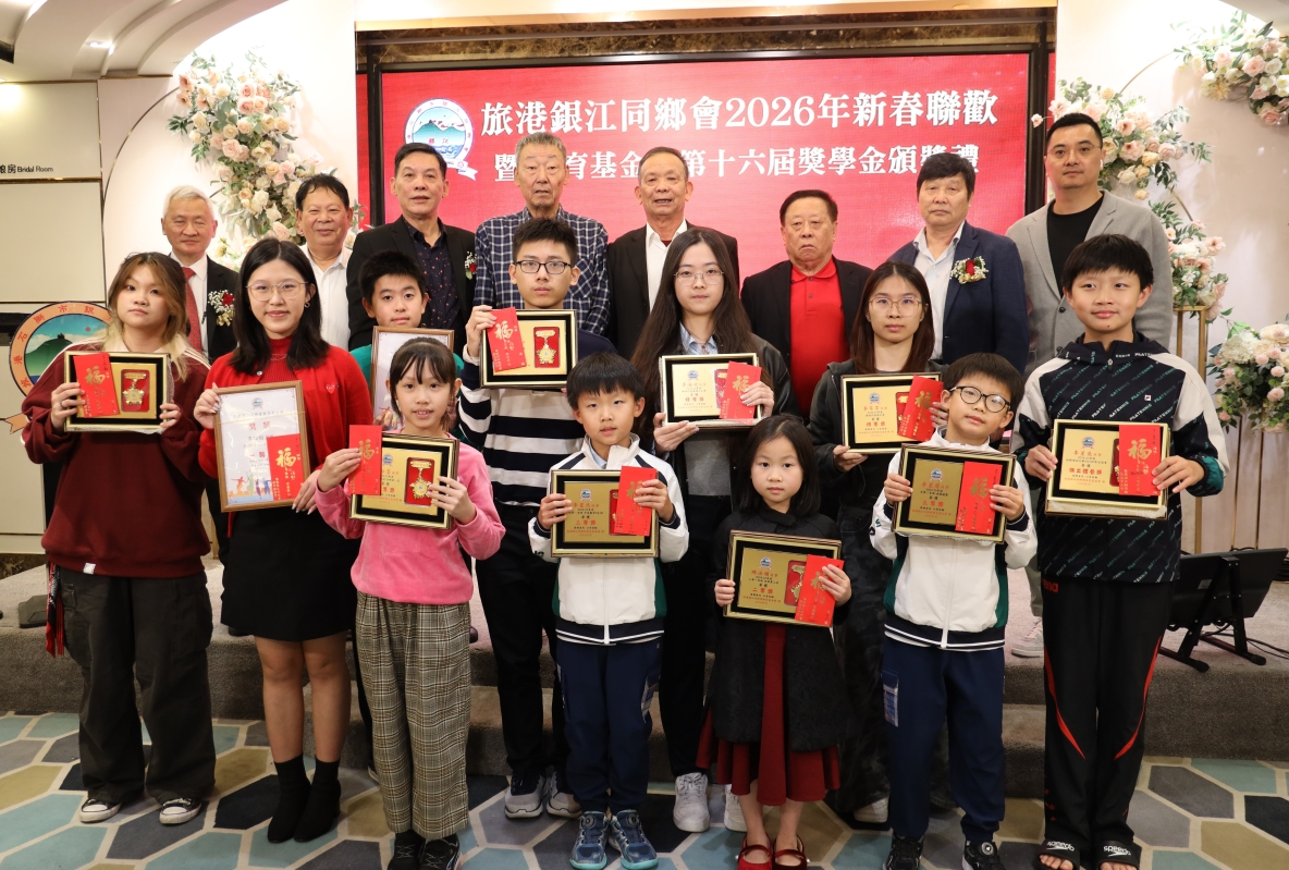 旅港銀江同鄉會2026年新春聯歡暨教育基金會第十六屆獎學金頒獎禮”在北角彩福酒樓舉行。