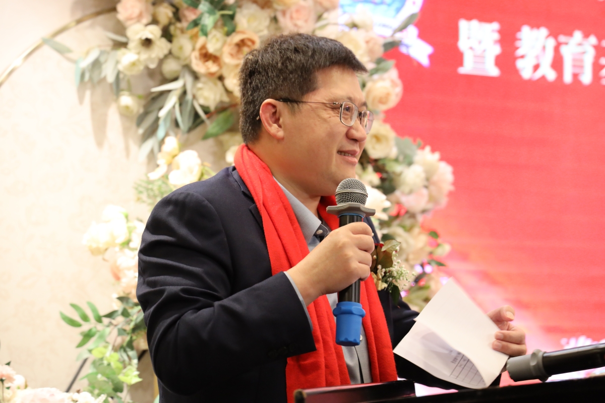 旅港銀江同鄉會、教育基金第十六屆會長李文演鄉賢發表講話。(右)