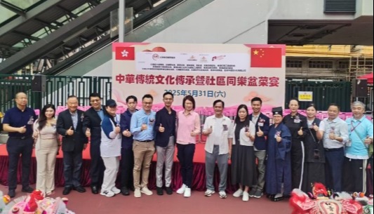 主辦方提供 活動由醒獅隊拉開序幕,隨後進行莊嚴的開幕祈福儀式。多位主禮嘉賓蒞臨現場,包括中聯辦九龍工作部處長朱杰,全國人大常委會委員、香港立法會主席李慧琼,港區全國人大代表召集人、香港立法會議員陳勇,香港立法會議員林振昇,署理九龍城民政事務專員張彥喬,九龍城民政事務處高級聯絡主任梁日欣,九龍城警區指揮官署理總警司梁國榮等,以及來自多個社區及工商界的領袖代表。 紅磡居民服務協會主席林德成致辭時表示,中華文化深具生生不息與多元融和特質。香港作為中外文化藝術交流中心,處處體現中華底蘊。紅磡廟宇林立,觀音廟、天后廟、福德祠等香火鼎盛,是街坊祈福聚會的重要場所。他續稱,廟宇承傳禮俗節慶,長輩帶領後輩參與祭祀、競投福品、共享盆菜,體現“敬天法祖、鄰里互助”的傳統精神。這些風俗與非物質文化遺產一樣,具可持續發展的社會基礎。是次盆菜宴正是此精神延續,圍坐共享,既是傳統滋味,亦為鄰里情感聯繫。 藝慧芸集主席曾麗蓮表示,一直以來在紅磡區服務,多年來不忘初心,為社區提供多元化服務,包括舉辦音樂會、嘉年華會、內地考察旅遊、講座,並透過組織各種文化活動,傳揚博大精深的中華文化。 紅磡居民服務協會向支持此次活動的機構及團體代表頒發感謝狀,感謝他們對弘揚中華傳統文化及推動社區和諧作出的貢獻。多位主禮嘉賓親自頒發感謝狀,進一步體現了對社區文化工作的重視與支持。 整場活動精彩紛呈,展現中華傳統文化多樣性與藝術魅力。簪花掛紅及畫龍點睛儀式是活動的另一亮點,出席的26位嘉賓共同參與,在醒獅與祥龍的簇擁下,為活動增添了濃厚的中國傳統文化氛圍。醒獅與祥龍的靈動演繹象徵著吉祥與繁榮,成為全場的焦點。巡遊尾聲,“象神金殿”更贊助三十席盆菜,邀請區內長者與有需要人士共慶同歡,送暖到社區。(完) 【編輯:黎金良】