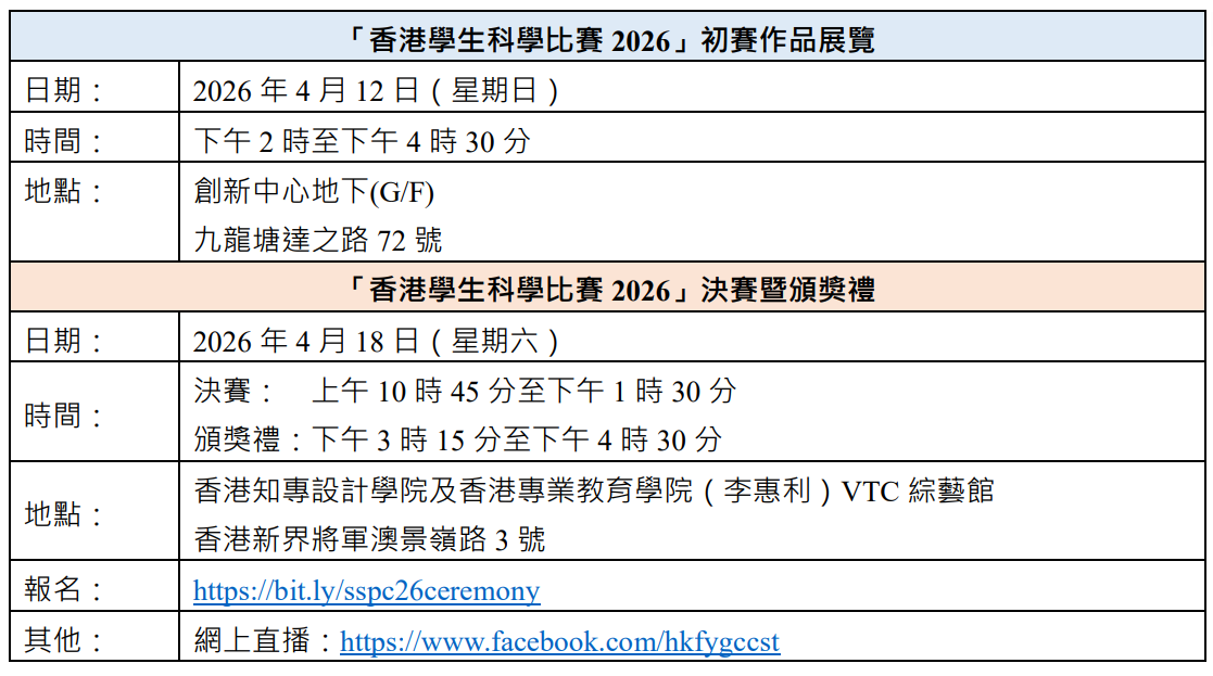 公眾人士可現場參與或透過網上直播觀賽,感受科學競賽的熾熱氣氛,共同見證新一屆青年科學家的誕生。