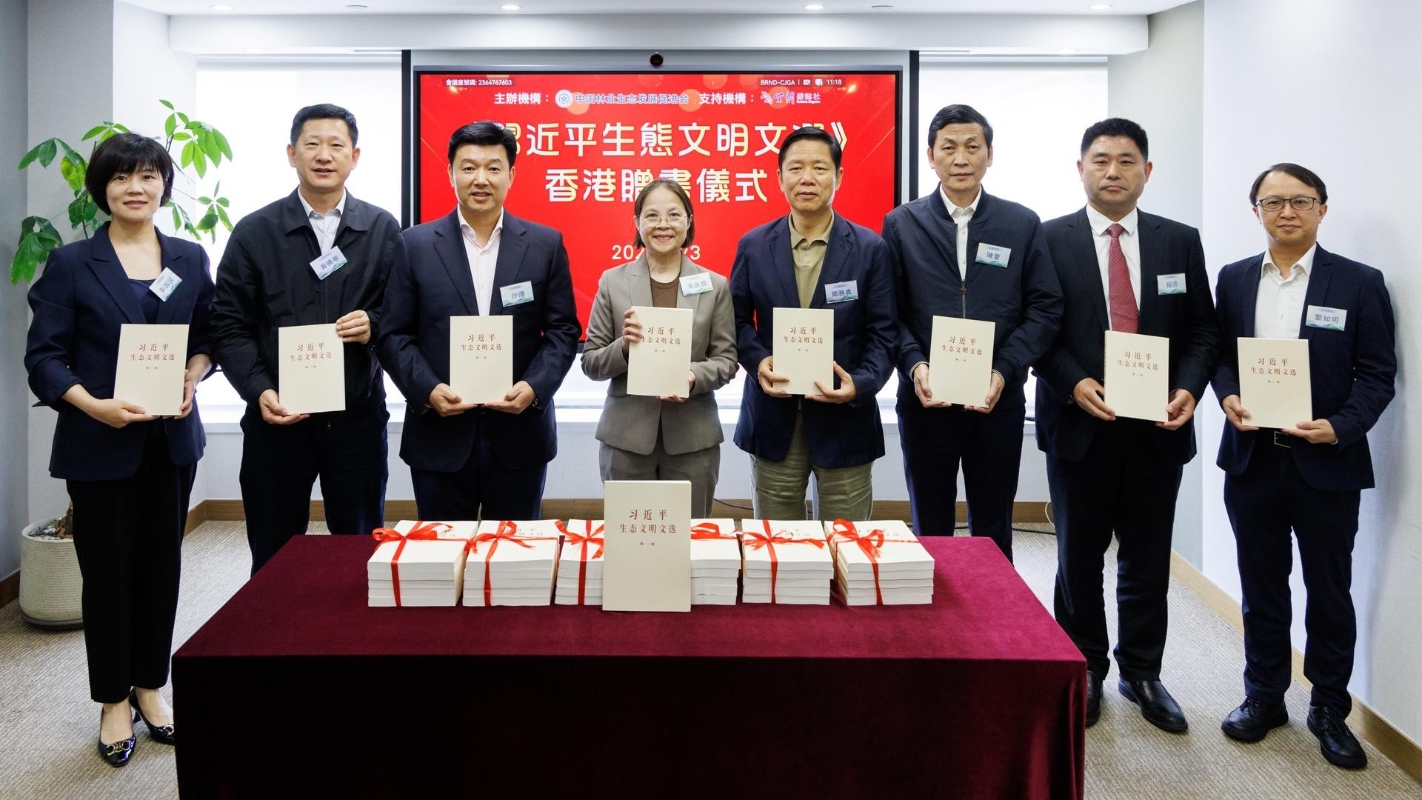紫荊網圖片 據紫荊網報道,本次活動意義深遠,不僅是一次贈書交流活動,也是對推動生態文明理念傳播、凝聚綠色發展共識具有重要意義,彰顯社會各界對生態文明建設的高度重視,體現了香港各界積極配合國家發展大局、推動綠色教育和可持續發展理念的責任擔當。 本次活動由中國林業生態發展促進會主辦,紫荊雜誌社支持舉辦。香港特區政府環境及生態局副局長黃淑嫻,紫荊文化集團影視藝術總監鄧務貴,中國林業生態發展促進會執行會長沙濤,紫荊雜誌社社長楊勇,中國林業生態發展促進會法定代表人、秘書長陳蕾,紫荊雜誌社副社長黃曉華,紫荊雜誌社助理總編輯黎知明,中國林業生態發展促進會副秘書長靳囡囡,香港特區政府環境及生態局媒體經理張定明等嘉賓出席。 陳蕾致辭表示,中國正在書寫人與自然和諧共生的新篇章,並為全球新增綠化面積作出重要貢獻。他指出,《習近平生態文明文選》第一卷集中體現了習近平生態文明思想的發展歷程、豐富內涵、科學體系和原創性貢獻,是新時代推進生態文明建設的重要理論成果和行動指南。他表示,在全面推進美麗中國建設的重要時期,香港主動對接國家發展戰略,深入學習貫徹習近平生態文明思想,有助於更好融入國家發展大局,並在綠色低碳、生態保育、綠色金融、低碳科技等領域與內地加強協同聯動,夯實可持續發展基礎,助力國家“雙碳”目標實現。 黃淑嫻致辭表示,《習近平生態文明文選》系統收錄了習近平主席關於生態文明建設的重要報告、講話和批示等內容,是新時代推進生態文明建設的重要行動指南,具有深刻的教育意義。此次贈書儀式以書籍為媒,聯結教育界、文化界及社會各界人士,有助於進一步推動習近平生態文明思想在香港社會和校園中的廣泛傳播與實踐,凝聚社會各界力量,共同建設綠色未來。她表示,香港特區政府將積極對接國家發展戰略,善用國家綠色產業發展的堅實基礎以及綠色低碳技術創新帶來的機遇,充分發揮香港“背靠祖國、聯通世界”的獨特優勢,更好融入和服務國家發展大局,推動綠色轉型和可持續發展。 在贈書儀式環節,中國林業生態發展促進會執行會長沙濤向香港特區政府環境及生態局副局長黃淑嫻贈送《習近平生態文明文選》,表達了以書為媒、深化交流、推動生態文明理念傳播的良好願望。隨後,與會嘉賓合影留念,交流互動。 此前4月17日在香港創知中學舉行的《習近平生態文明文選》贈書儀式,多位來自教育界、文化界及社會機構的嘉賓齊聚一堂,以書籍為橋樑,進一步推動習近平生態文明思想在香港校園的廣泛傳播與實踐,凝聚力量,攜手建設綠色未來。此次活動不僅彰顯社會各界對生態文明建設的高度重視,也體現香港教育界積極配合國家發展大局、推動綠色教育和可持續發展理念的責任擔當,為推動習近平生態文明思想走進校園、融入青年教育、拓展社會影響力發揮積極作用。