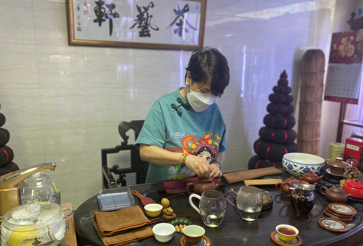 “茶藝軒”茶王劉正慶與一眾愛茶人士歡聚品茶。