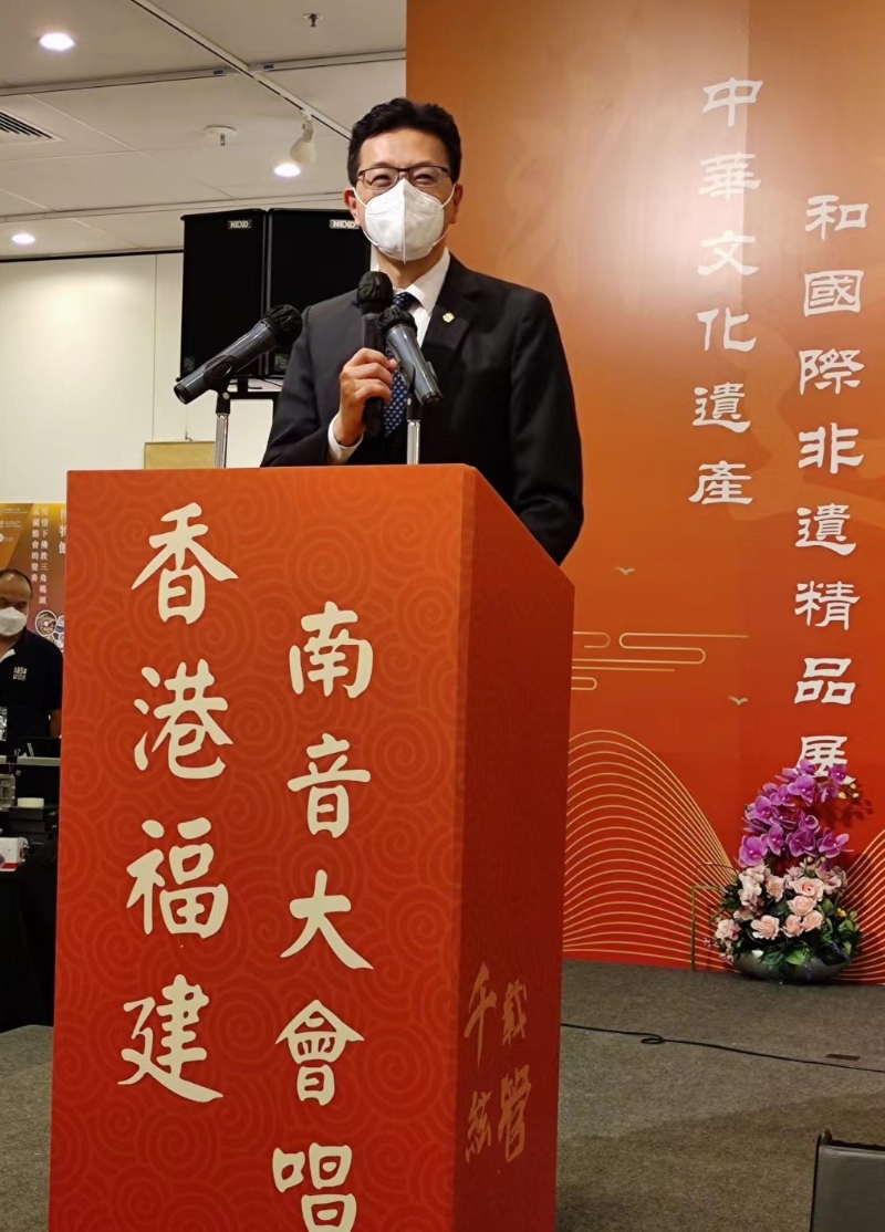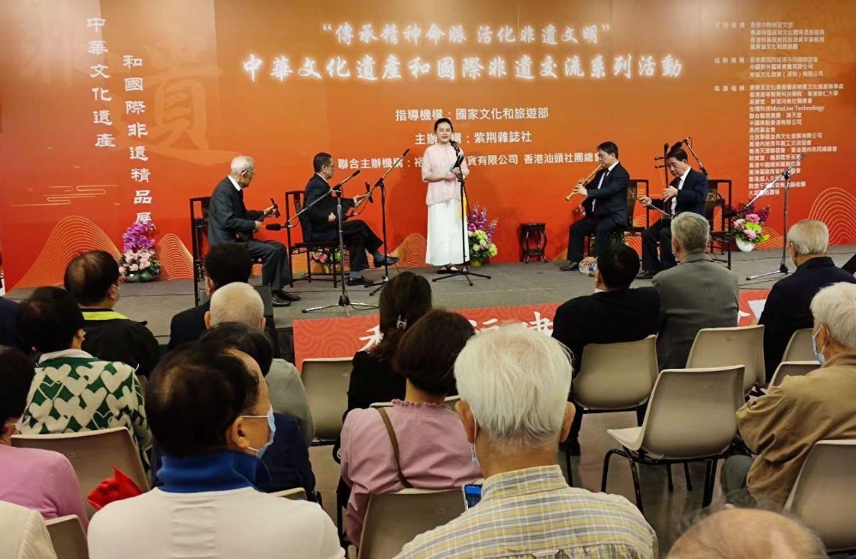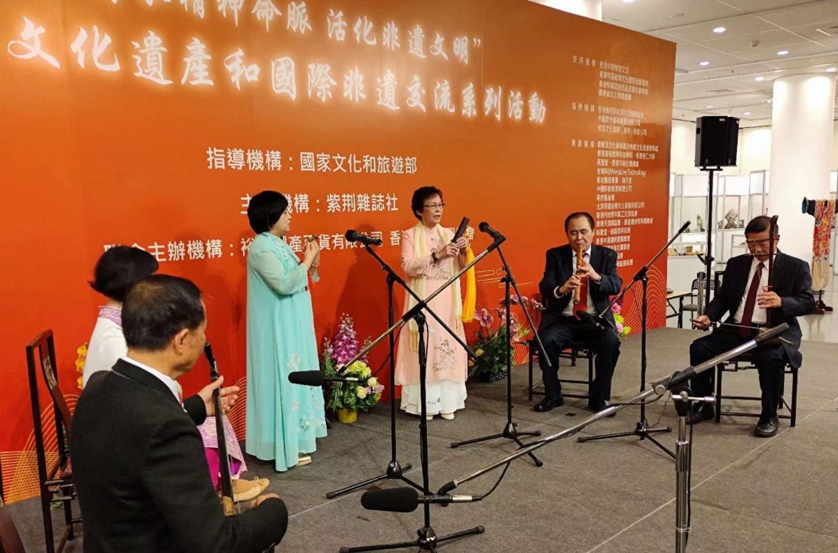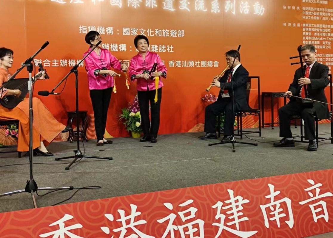 第一屆“香港福建南音大會唱”,11月26日下午在香港中央圖書館展覽館舉行。本次活動為紫荊文化集團之旗下機構紫荊雜誌社主辦的“傳承精神命脈 活化非遺文明”中華文化遺產和國際非遺交流系列活動之一。此為國家文化與旅遊部支持項目,批准列入“內地與港澳文化和旅遊交流重點項目”。是次活動由青年學者洪高慈導演發起與主辦方合作並獨家贊助,另專設“香港福建南音青年傳承獎學金”,支持古樂薪傳。為全香港有史以來的首次南音大會唱,為規模最大的南音盛會,海內外南音社團發來賀信,恭賀實現四代同台、多元傳承的盛況。當天下午,現場吸引眾多觀眾到場。 南音,原稱弦管,於各地又有南管、南樂、五音、郎君樂、禦前清曲、禦前清音、泉州南音、福建南音等別稱,是對一類特殊樂器、音樂、樂團和表演模式的總稱。南管的歷史相當悠久,是典型的漢族音樂模式,屬於絲竹型的國樂。以泉州一帶為發源地,流傳於現今的台灣閩南裔族群聚居地區和閩南語系泉漳話地區,傳承了漢魏以來的古樂遺風。與智化寺京音樂等,為現存最古老的幾個合奏樂種。南音以五人之間的合奏為主,五樣樂器各有專屬的定位,演奏時可聽見各樂器的細致樂音,相輔相成、不相雜沓,包括拍板、琵琶、三弦、洞貓、二弦。有純器樂演奏曲,也有執拍者歌唱的曲目。因作為閩南地區的核心樂種,被諸多閩南劇種吸收運用,如梨園戲、泉州木偶戲等等。2009年列入聯合國教科文組織人類無形文化遺產代表名錄,流傳於中國的廈門、泉州、漳州,以及台灣、東南亞的菲律賓、新加坡、馬來西亞、印度尼西亞等華裔閩南人聚居地諸地。(施雄鵬攝)
