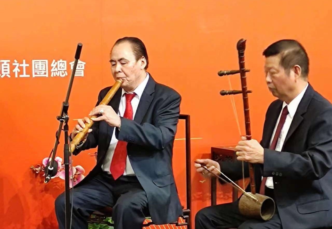 曲藝師曾順昌(左)帶領的泉州南音團隊演奏出鄉音裊繞。