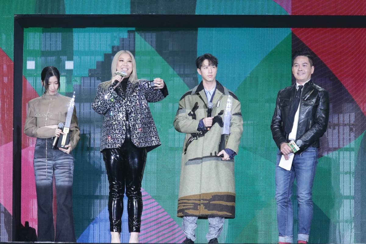 香港“新城勁爆頒獎禮2022”於12月29日假香港會議展覽中心舉行。“新城勁爆頒獎禮2022”是由香港新城電台舉辦的一個本地音樂年度頒獎典禮,本屆口號為“音樂新葉.創造傳說”,是屆舉辦全港首次“元宇宙投票”。出席的歌手及組合包括:陳柏宇、許廷鏗、鄭欣宜、馮允謙、泳兒等歌手,樂壇新人After Class、STRAYZ、吳啟洋、谷旻、周卓盈、洪助昇、張天穎、張蔓莎、陳宗澤、雲浩影、黃明德、黃筠兒、黎展峯、鍾柔美、顧定軒等出席頒獎禮。圖為藝人在演唱表演。(張海德攝)