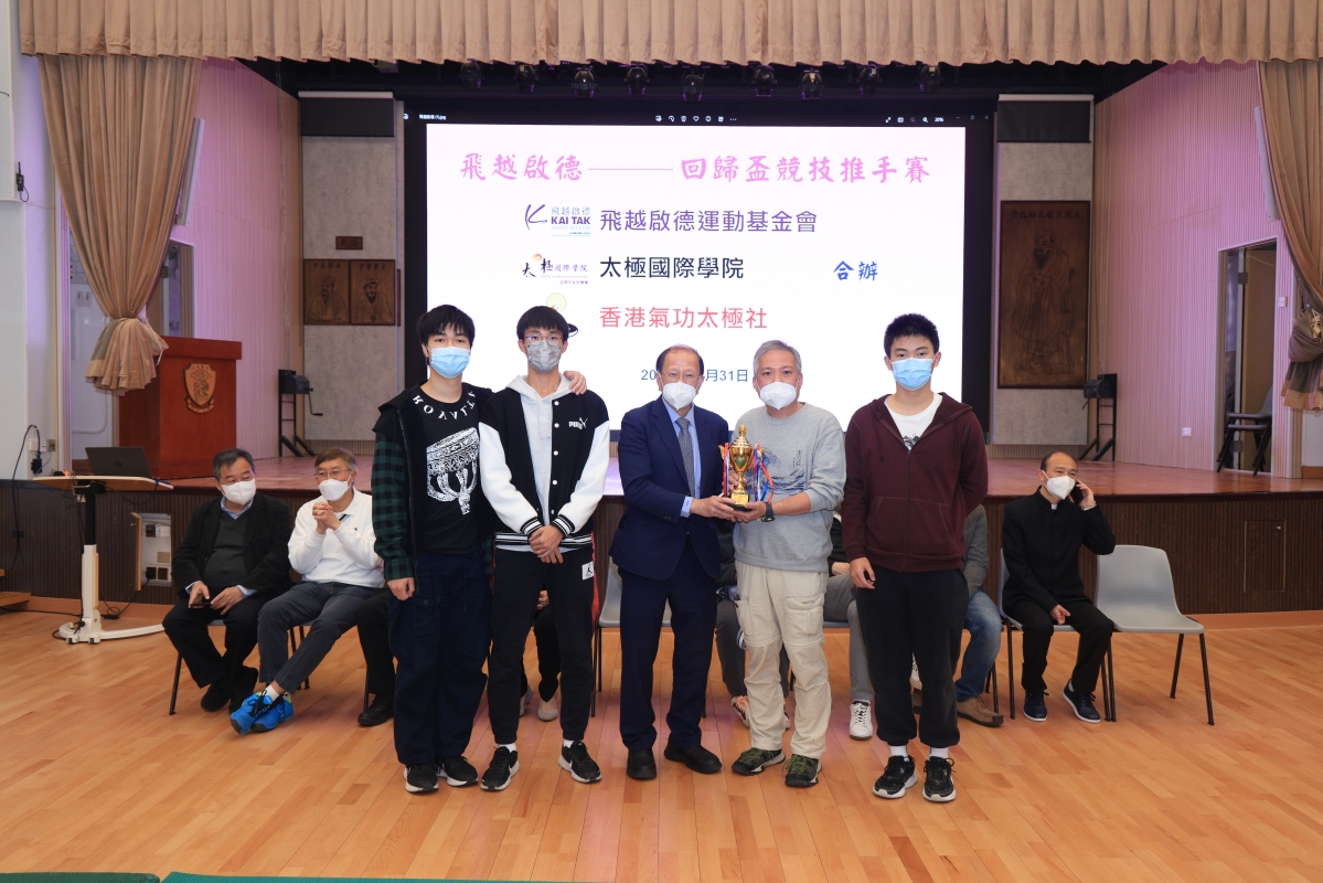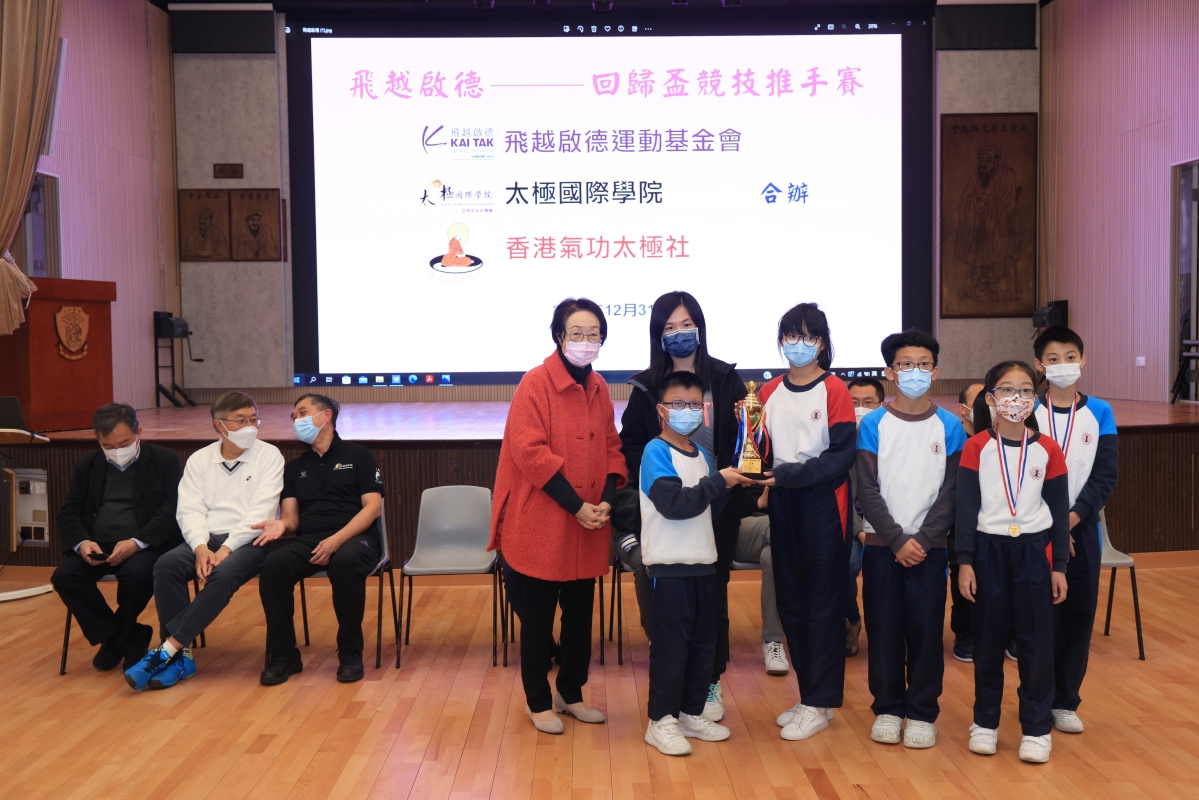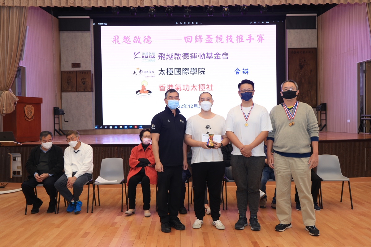 香港新聞網12月31日電(記者許其皓) 12月31日,香港太極國際學院、香港氣功太極社及飛越啟德運動基金會合辦“飛越啟德回歸盃競技推手賽”於黃大仙大成街孔教大成小學舉行,參賽選手經過一番拼搏較量,決出各項賽事獎項。當天出席頒獎的嘉賓包括,太極國際學院主席林文輝、太極國際學院總監貝鈞奇、香港婦女事務事務委員會主席陳婉嫻女士、香港考評局總監麥勁生教授、教聯會總幹事崔劍博士、香港國際武術總會主席冷先鋒、太極國際學院法律顧問劉嘉華律師、太極國際學院顧問李漢源等武術界嘉賓,活動在一派熱鬧氣氛中圓滿結束。