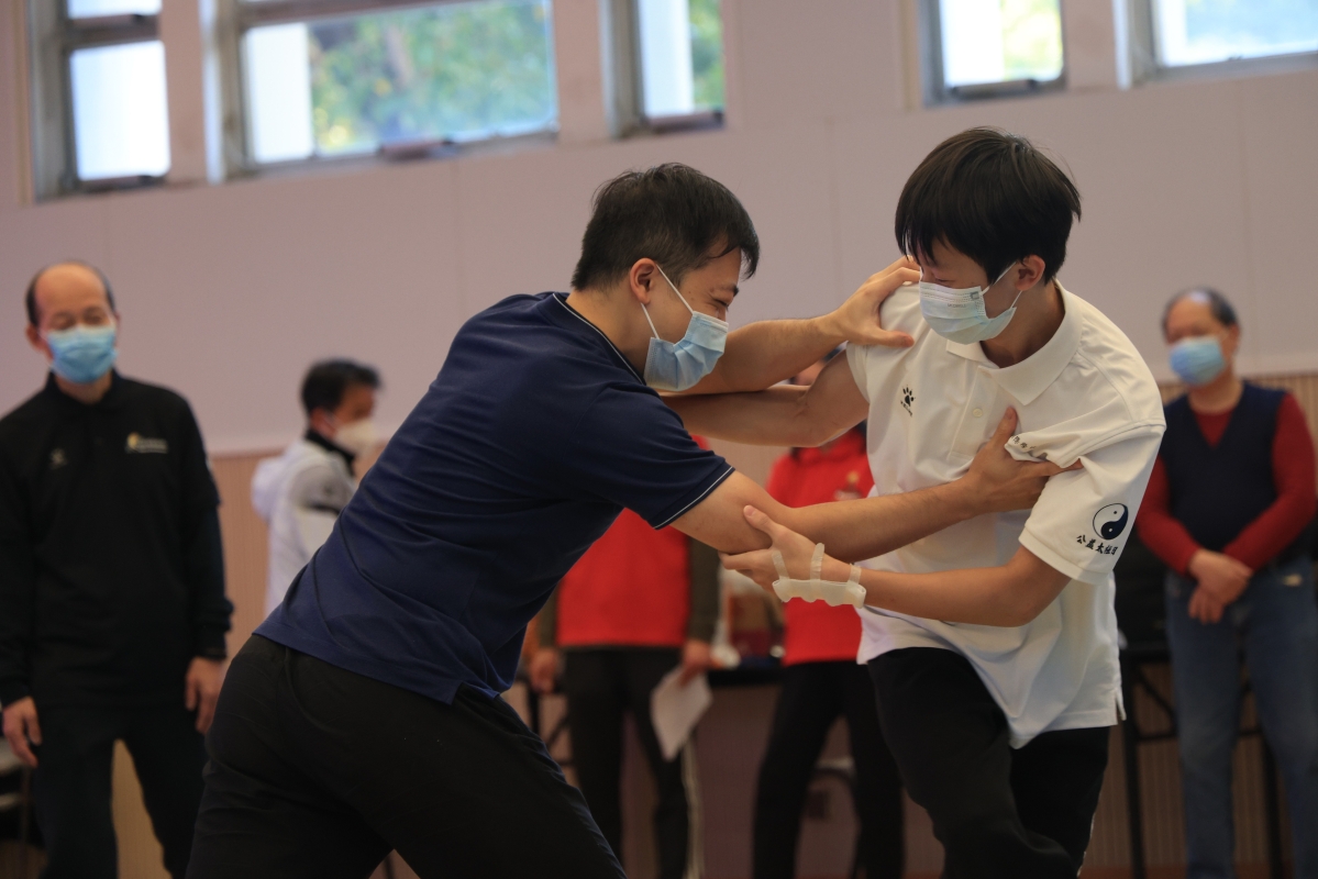 學生參加太極推手賽。