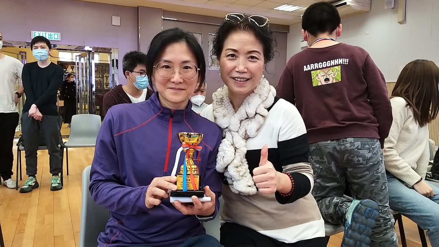 獲得50公斤女子推手冠軍的秦淑美(右)與敦煌千手觀音舞蹈團廖蘭香團長。 【編輯:洪少葵】