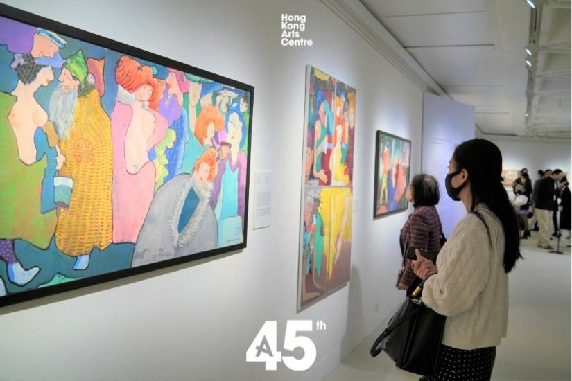 “歡樂今宵:陳福善的藝術”展覽現場。圖源:香港藝術中心 今次“歡樂今宵:陳福善的藝術”是香港藝術中心四十五週年旗艦展覽,以主題式研究探討陳氏的藝術傳奇歷程,陳福善以其異想天開的風景、人物和動物畫作而聞名,範圍橫跨從西方現代主義到中國水墨畫,從電視到流行音樂,從童話故事到神話。 他獨特的視覺語言展示了香港在 20 世紀的劇烈社會變革。