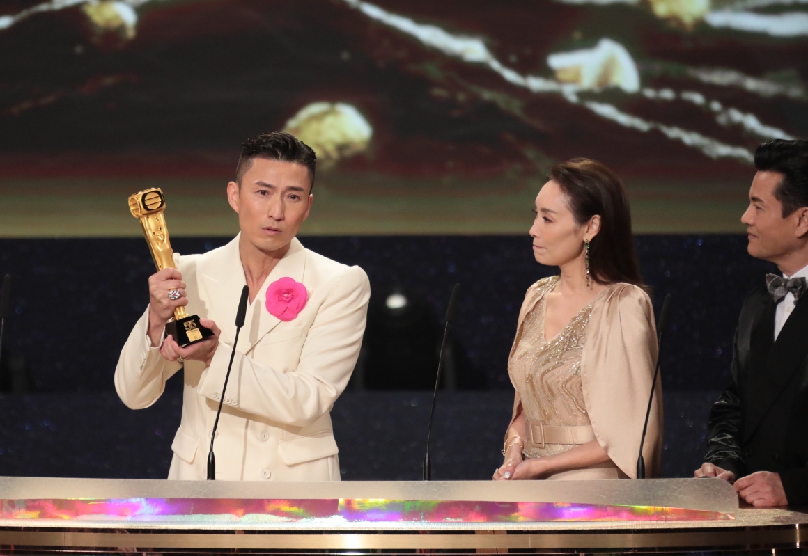 江美儀奪得最佳女主角(右)、陳山聰奪得最佳男主角。