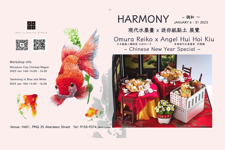香港新聞網1月17日電 當水墨畫遇上微型粘土藝術,會創作出怎樣的作品? ARTS & Crafts Studio呈獻“調和:現代水墨畫 x 迷你紙黏土展覽”,由日本微型粘土藝術家大村玲子(Reiko Omura)和香港當代水墨畫家許開嬌(Angel Hui)合作,將水墨畫融入微型粘土藝術呈現的場景中,別具趣味!展覽在PMQ元創方舉行,免費參觀。