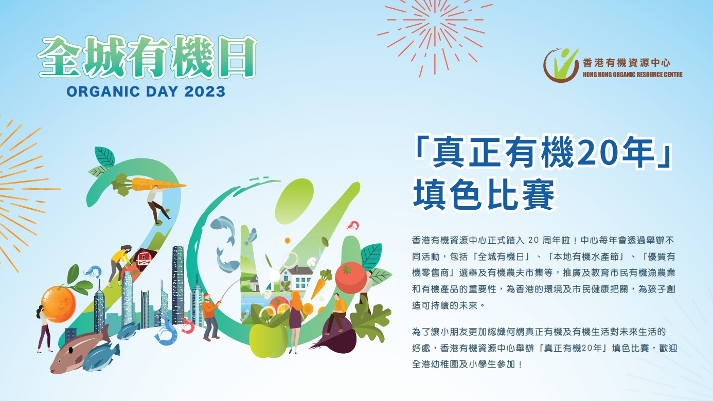 香港新聞網2月3日電 香港有機資源中心正式踏入20周年,中心每年會透過舉辦不同活動,包括“全城有機日”、“本地有機水產節”、“優質有機零售商”選舉及有機農夫市集等,推廣及教育市民有機漁農業和有機產品的重要性,為香港的環境及市民健康把關,為孩子創造可持續的未來。 為了讓小朋友更加認識真正有機及有機生活對未來生活的好處,香港有機資源中心舉辦“真正有機20年”填色比賽,歡迎全港幼稚園及小學生參加!填色比賽詳情及填色表格下載點此。