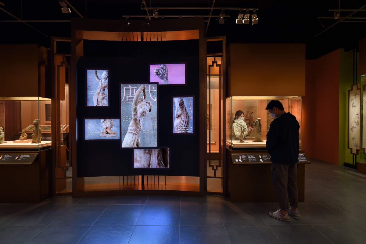 “眾裡尋她”文物展舉行至2月27日(圖片:政府新聞處) 展覽由四個部分組成,從多個角度向觀眾展現古代女性的時尚風姿、靈慧巧思、才華和生活,展現出中華優秀傳統文化與藝術精粹。第一部分環繞歷代女性髮型、妝容與服飾的時尚潮流變化。重點展品包括國家一級文物,全長13米的清代《古代仕女行樂圖》畫卷,這幅絹本手卷引領觀眾穿過竹林、庭園、迴廊、樓臺等20多個活動場景,觀眾可由此了解古代女性豐富多彩的消閒活動,儼如一幅古代娛樂大圖鑑;《樂舞俑》則展示了身穿胡服的唐代少女翩翩起舞的婀娜姿態,呈現出古代女性美態。