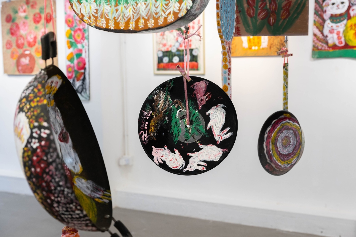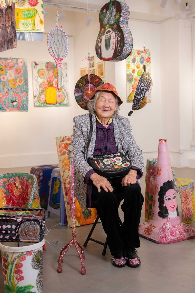 香港新聞網2月6日電 上環13A New Street Art Gallery由即日起至2月12日呈獻花婆婆“與花共舞”個人作品展。民間藝人兼西貢客家人“花婆婆”,80歲才展開其畫家生涯,但不曾學畫的她卻自學成才,以鮮花作為具標誌性的主題,把牆壁、平底鑊、摺櫈、結他等平平無奇的日常物品化為畫布,以鮮艷色彩和童趣筆觸,繪出一個個斑斕的藝術世界,並視繪畫為退休後的第二事業。這些充斥牆壁、路牌與各種用品的畫作,兼以花婆婆無師自通的獨特畫風,重複繪上相同的事物,更為她帶來了“香港版草間彌生”和“女版曾灶財”的稱譽。