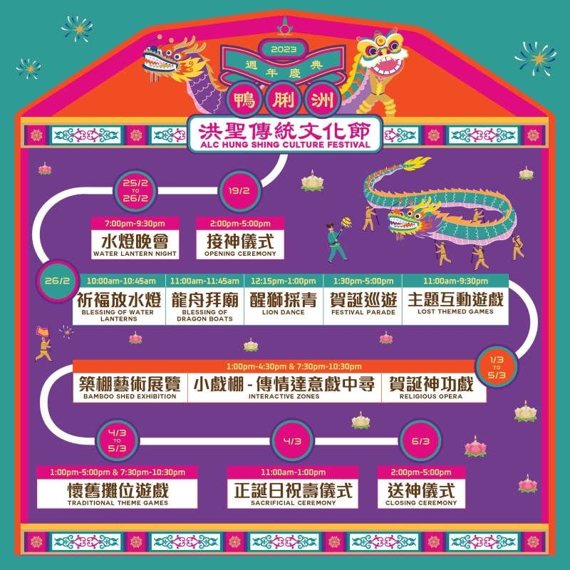 除了上述傳統活動,今年還會加入以天文、地理及數學為主題互動趣味遊戲,帶領遊客更深入了解鴨脷洲及洪聖傳統文化節。