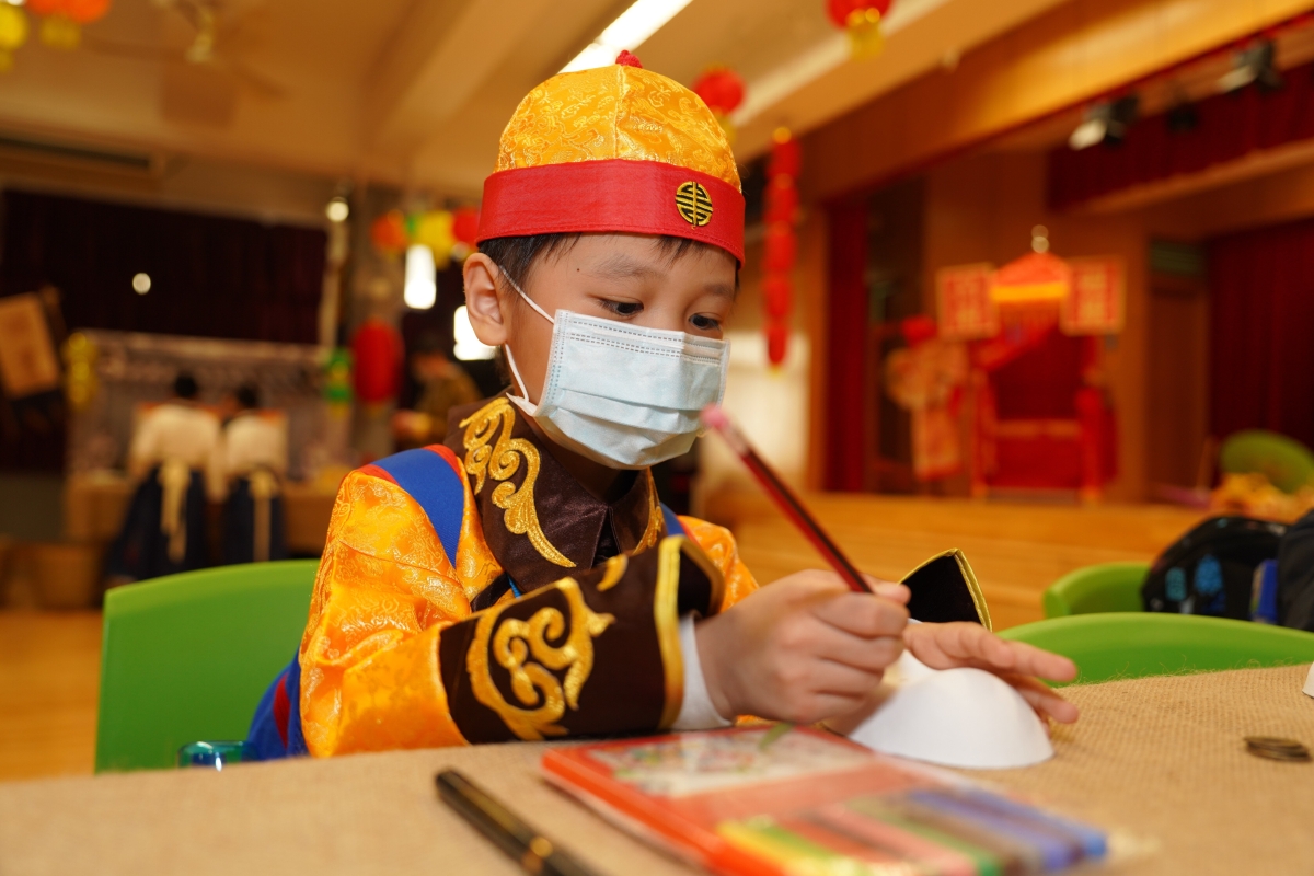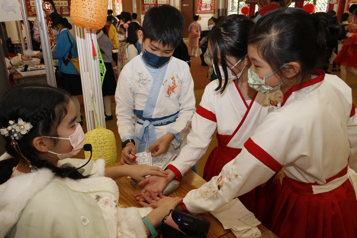 香港教育局近年積極在小學中國語文科內推動中華文化學習,期望學校能透過整體課程規劃,加強學生在語文課程中的文學、中華文化和品德情意三個學習範疇的學習,以提升學生的語文素養。 學習中華文化的素材俯拾皆是,例如生活習慣、語言文字、價值觀,以至日常生活見聞、體驗等,都可以是學習的材料,但如何能讓小學生活學活用呢?位於屯門的路德會呂祥光小學有一個既創新又有趣的方法,讓學生能在實踐中認識中華文化。 路德會呂祥光小學一向給人的印象是著重英語教育,過往鮮有聽聞該校推廣中華文化教育的消息,但據該校校長黃綺華女士表示,原來該校早於2019年已參加了由香港中文大學文學院國學中心聯同清華大學中國經學研究院和馮燊均國學基金會主辦的“粵港澳大灣區中華禮儀教育計劃”,並成為了核心先導學校,她同時指該校一直致力推動國民教育,近年更以培養學生與中國傳統禮儀和中華文化有關的核心價值觀,作為學校發展價值觀教育的主幹,以陶鑄學生優良的品德和行為。黃校長更指出,在疫情發生前,該校每年均會安排全體小四及小五級學生到內地進行學術及文化交流,惟近年受疫情影響,學生無法返回內地,但仍有以網上視像形式與內地姊妹學校保持交流。 隨著政府逐步放寬防疫措施,路德會呂祥光小學於近日舉辦了“中華文化薈萃日”,把古代中國市集搬進校園內,透過各類展示傳統中國技藝的活動,讓學生學會欣賞中國傳統文化藝術的博大精深,培養國民身分認同。 為了讓學生投入是次活動,該校將校舍佈置成中國古代繁華市集,學生仿如置身於中國古代的大街小巷之中。市集中不乏以古代中國傳統建築藝術為主題設計的攤位,透過中國信守均衡對稱的原則,展示飛檐及馬頭牆等獨有的建築結構,以及石雕、木雕等傳統工藝。 此外,該校邀請了一批技師,在市集內擺放展示不同傳統技藝的攤子,即場示範及教授學生各種技藝,包括製作麪粉人偶、織錦刺繡香囊、古代風車、京劇面譜、皮影戲人偶、彩虹書法、毛筆春聯、糖畫等,學生透過親手製作這些小玩意,認識中國傳統手工藝的精髓。除了靜態活動外,市集內也安排了投壺、蹴鞠和踢毽子等傳統中國運動,讓學生能一嘗古時文人雅士閒暇時的雅興生活。