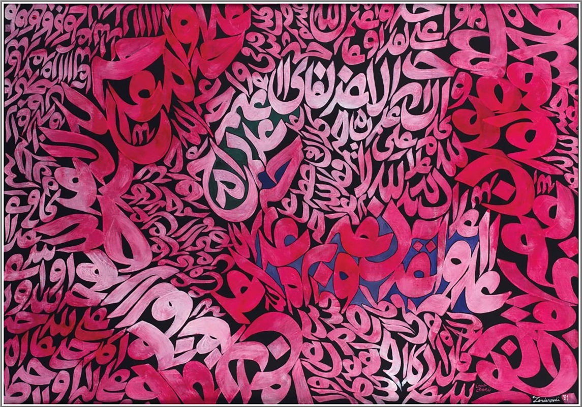 王秋童《不夜天》 這次與別不同的合作是啟發自中國(及更廣泛的東亞地區)與伊朗的傳統書法藝術,旨在提供平台匯聚兩地藝術,促進彼此間的交流。香港區聯合策展人王無邪表示:“香港畫家,從事水墨創作者,多兼擅書法,強化點線表現,亦有利於題字,作為畫面元素。其銳意創新者嘗試以文字、字母、符號入畫,由而跨入書藝的領域,作為中國書畫同源的當代詮釋。” 伊朗區策展人Yas Mostashari Chang解說:“波斯語言由於字型構造較複雜,故能提供無限的想像空間讓藝術家的創作馳騁。這次展覽展示由1950年代開始到當代藝術作品從技巧到使用媒介的進化與轉變。”