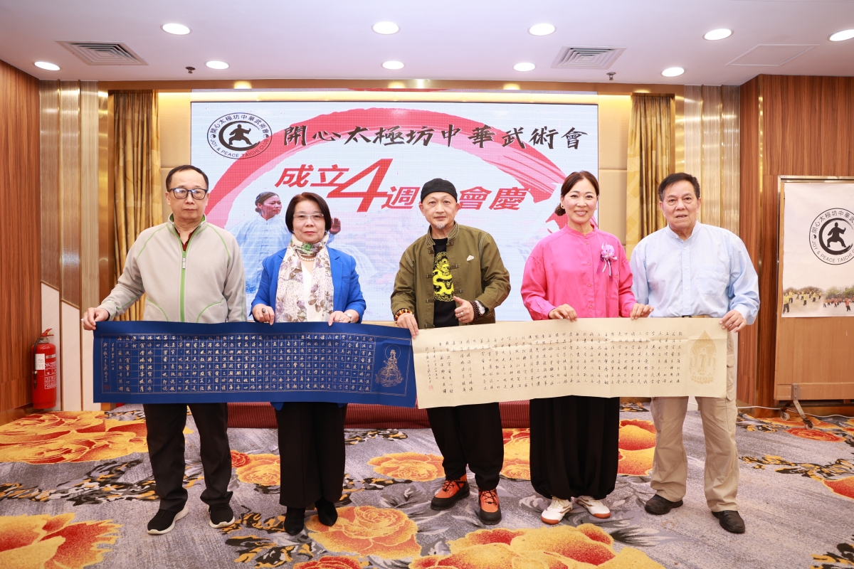 香港新聞網3月5日電 3月4日,香港中泰盛大投資集團藉此“開心太極坊中華武術會”慶祝成立四週年盛會之際,中印環球文化藝術研究院長林梅香在活動現場贈送藝術家"龍江散人"之墨寶《心經》與麥瑞芳會長收藏並祝賀慶祝活動圓滿成功!《心經》是藝術家"龍江散人"王永才作品,王永才系黑龍江海倫市人。自幼喜愛書法繪畫,遍臨名家,現為中國書畫家協會、黑龍江書法家協會會員。(毛志亮 攝)