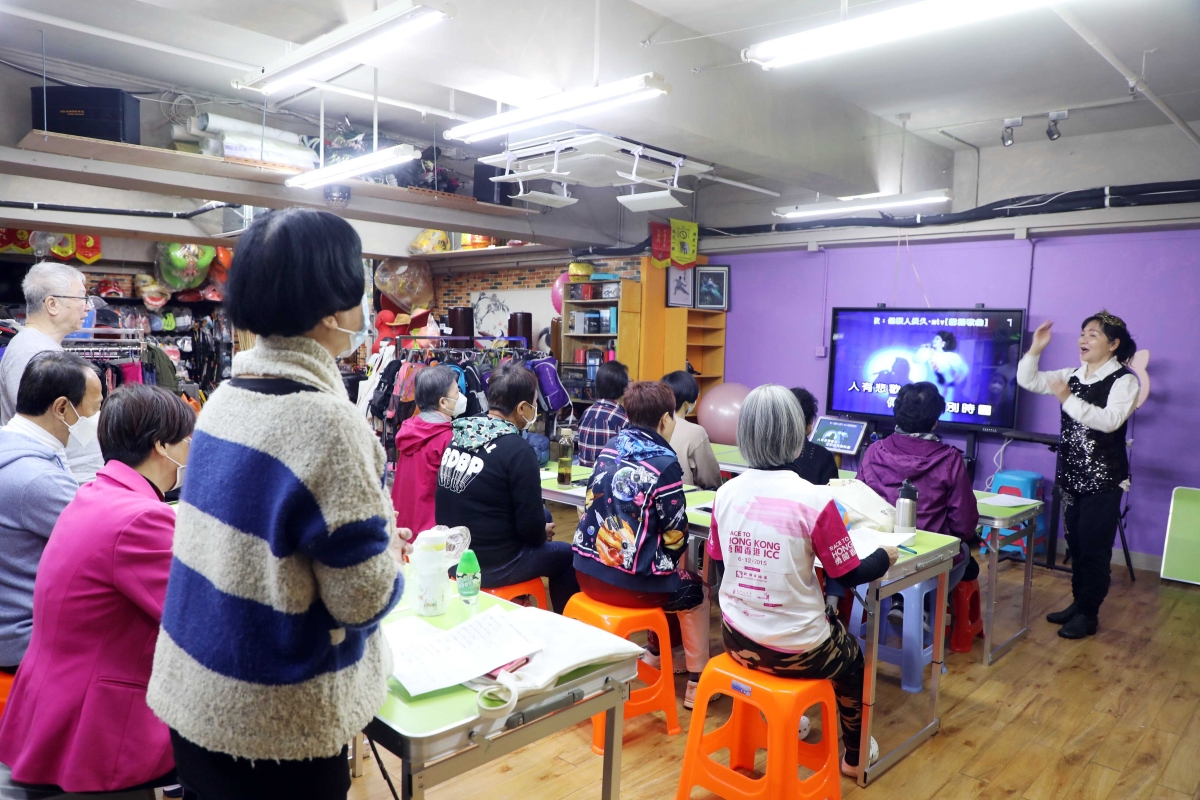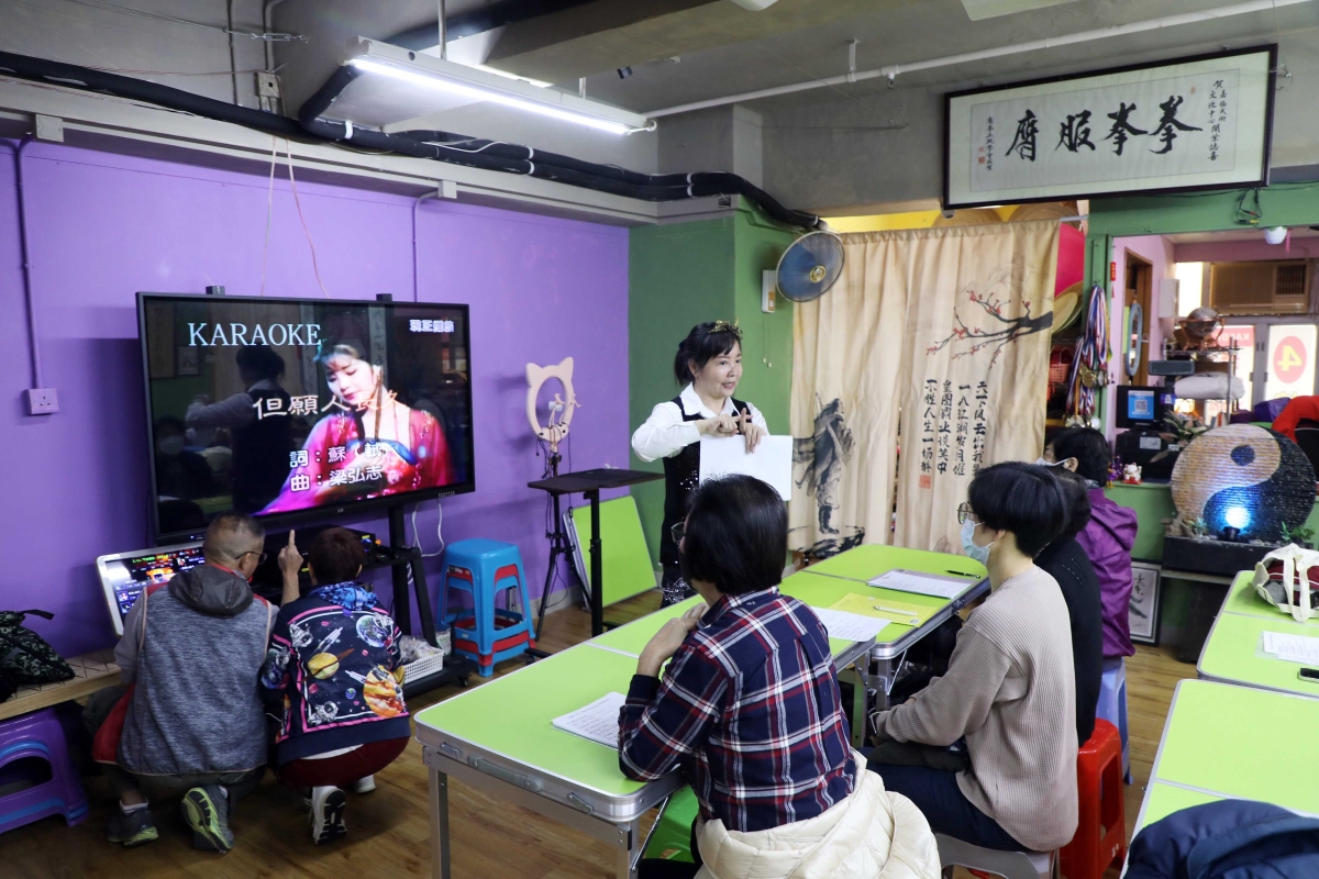 香港新聞網3月6日電(記者洪少葵)早春三月,萬象全新。3月6日,記者走進嘉福康體公司,卻有陣陣歌聲傳來,歡歌笑語。香港嘉福康體公司是一家連鎖企業,老闆尤贊成創新思維,在位於香港觀塘區其中一家展覽室開設歌唱班,邀請專業聲樂老師教導唱歌。繼去年10月開班後,報名參與的市民踴躍,效果也令人滿意。學員多為已退休或半退休的中老年人。當天上午,歌唱班教師李曉文帶領學員先打開準備好的教案,將樂譜《但願人長久》發到每位學員的手中,並教導學員唱歌從丹田運氣、朗誦歌詞要達聲情並茂。導師李曉文是香港一名資深音樂老師,執教20餘年,亦是《香港好歌聲》評委。