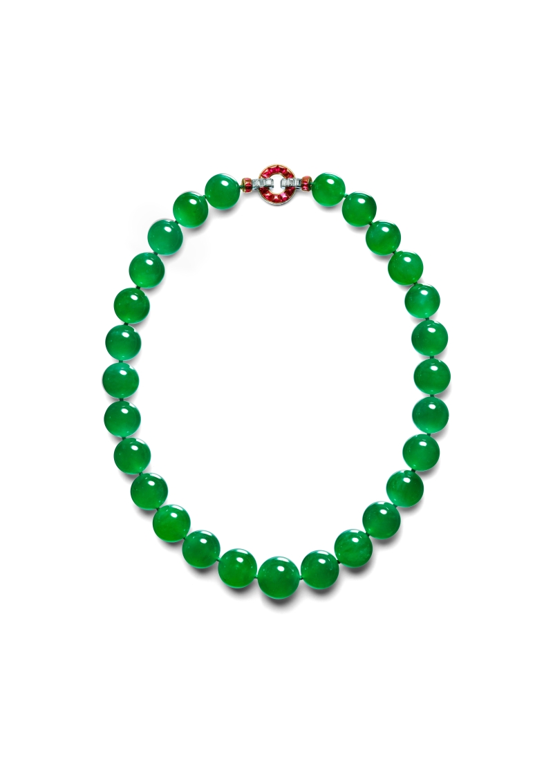 項鍊,卡地亞巴黎,1934年(圖片:香港故宮文化博物館提供) 展覽按主題共分四個部分。第一部分“皇室與貴族女性:優雅與名望”展示皇室及貴族女性在19世紀卡地亞發展初期所扮演的重要角色;第二部分“女性新姿:打破傳統”介紹卡地亞珠寶設計在女性解放潮流的背景下創作的新風格珠寶;第三部分“好奇尚異:跨文化靈感”探索中國和世界藝術如何激發卡地亞的創作靈感,以滿足人們對新事物的渴求;最後一部分“非凡女性:璀璨新傳奇”則聚焦卡地亞珠寶與現代女性之間的密切關係,展出的珍品來自多位舉足輕重女性的珍藏,包括摩納哥王妃嘉麗絲.姬莉(1929-1982)、著名演員伊莉莎白.泰萊(1932-2011)、林青霞與劉嘉玲,以及女企業家何超瓊等。 中國美學對世界女性生活方式和時尚的深遠影響 “百樣玲瓏”展亦著重呈現中國藝術對卡地亞珠寶在設計風格、圖案、選材與工藝方面的啟發,當中數件展品展示了中國藝術對環球女性生活方式和時尚的影響,例如卡地亞於1928年依照路易.卡地亞與夫人(1895-1952)曾收藏的一件清代康熙五彩庭院仕女圖瓷盤製作了含中國風格化妝盒;卡地亞於1919年製作其歷史上第一件帶中國道家太極紋飾“陰陽”的鏈墜;法國高級訂製時裝行業的首批女設計師之一珍妮.派昆(1869-1936)於1920年獲贈飾有中國傳統紋樣“雙龍戲珠”的卡地亞胸針;以及美國社交與時尚界名媛芭芭拉.赫頓(1912-1979)於1933年結婚時獲贈的卡地亞項鏈,所用的翡翠正是中國人喜愛的名貴寶石。