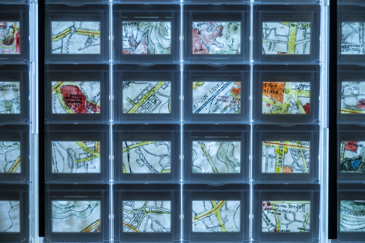 《Mapping Memories - Keiji (Seoul) 1920》(圖片:主辦方提供) 這次展覽名為“生,存,在”,策展人陳浩楊特別解釋其意義:“‘生’——擁抱生命各種面貌、邏輯和時序;著意保‘存’過往記憶和材料,用以解構人類存在的悖論,以及理解歷史如何被客觀紀錄。當存在是為對時地的細微觀察,‘在’指該變化如何影響我們自身的覺察。”;謝淑婷表示:“這個展覽是利用通過不同視覺元素的結合,讓觀眾從繁囂鬧市進入可漫步停留,穿梭今昔時空之環境,從石屎森林回看大自然,以表達生、存、在之間的相互依存關係。”。