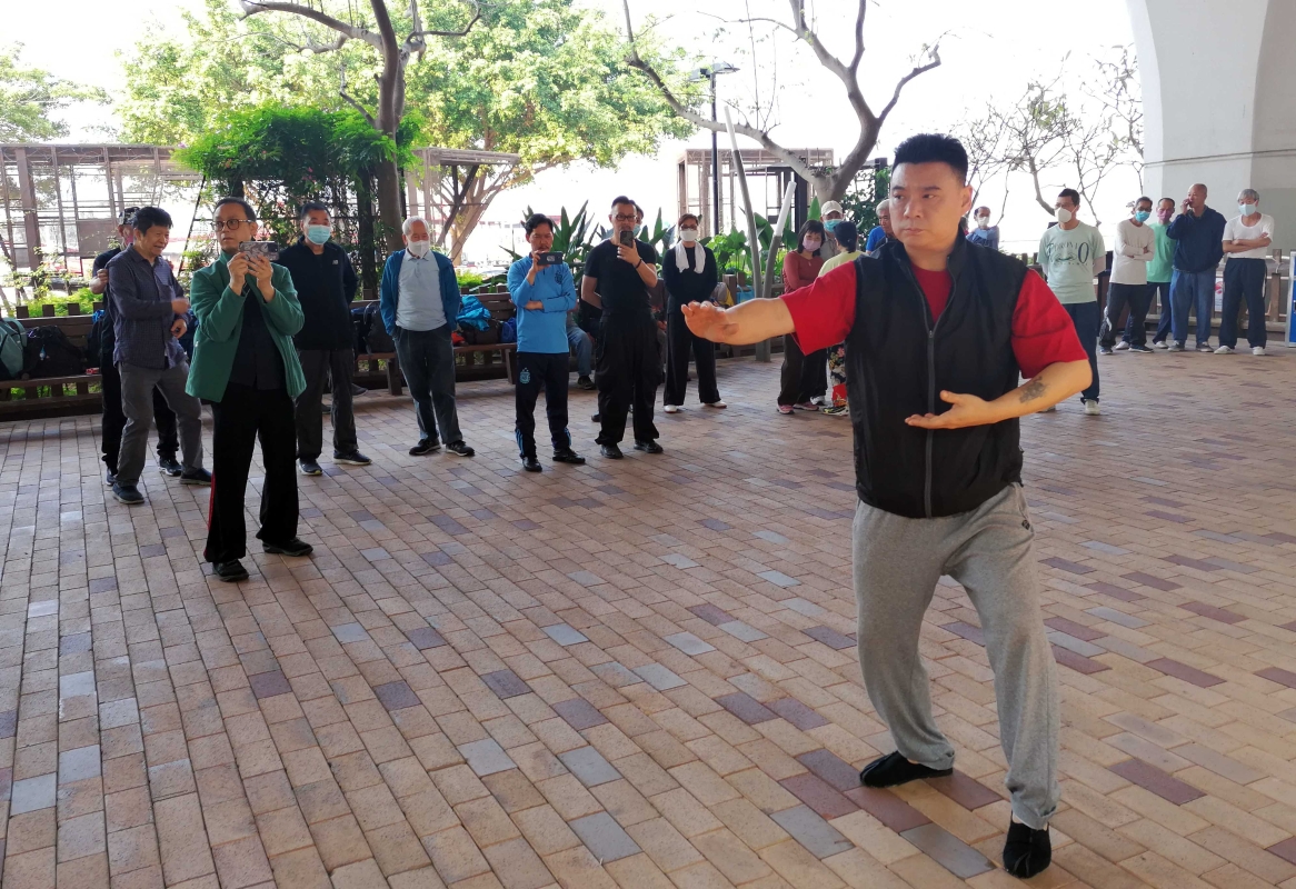 香港新聞網3月9日電(記者洪少葵) 早春三月,晨光明媚。9日清晨,在香港觀塘海濱公園有一群太極拳、武術愛好者,各展其技,場面熱鬧,大家樂在其中。來自內地的武術家馬貴鵬老師正為大家演練陳式心意混元太極拳,他一招一式,環環入扣。將陳式太極之順逆纏絲,彈抖之勁表演得淋漓盡致。這個逢星期四定期於觀塘海濱公園舉行的太極聚會,近年來,不少志同道合的各種流派武術、太極拳愛好者,在施雄鵬、尤贊成、何成等師傅組織下,練習太極推手和武術健身,交流心得,分享武技。因為不是教學班,亦沒有機構組織,全賴一眾愛好者自發參與。所以參加者都約定俗成叫這聚會為“觀塘海濱太極推手會”。 施雄鵬是香港著名太極推手武術家 ,是聚會早期參與者,他曾學習董家和楊式太極,早年與一班太極愛好者,定期在觀塘海濱聚會交流所學,慢慢這個聚會名聞遐邇,吸引了更多太極愛好者來,到現在已有大約一百位聚會成員。施雄鵬表示,聚會除了交流心得外,邀請太極名師到場指點外,主要切磋以推手為主,但盡量少摔跌,原則是大家要免傷和氣。多年來,各成員能一團和氣,和而不同,讓大家以武會友。 而另一位組織者尤贊成,是香港最大型武術用品嘉福康體公司老闆,幾乎武術界人士都到過他的公司購買武術用品。尤贊成對武術健身有獨特的見解,每天還堅持修練少林易筋經並致力推廣武術健身文化。 到訪推手會的馬貴鵬老師是當代著名太極拳傳播者,武術家太極拳大師馬廣祿先生之子,著名武術家韓建中弟子。陳式太極拳第十二代傳人、北京陳式太極拳第四代傳人、陳式心意混元太極拳第三代傳人。江陰市陳式心意混元太極拳協會會長、中國華西村太極館總教練等眾多武術界公職。馬貴鵬老師82年跟隨父親馬廣祿先生習練傳統武術,後隨父進京得到師爺馮志強老先生的悉心指導,開始了深入研究練習傳統武術及傳統陳式太極拳的推手運用,技擊格鬥術,在繼承傳統精髓的基礎上,不斷研發出了適合當代人群的武術和陳式太極拳,徒弟、學生遍及海內外。 中華傳統武術太極拳,既是武功,又是保健體育,深受民眾認可與健身愛好者的喜歡,如今,遍覽大江南北乃至國際,學習太極之人有增無減。“觀塘海濱太極推手會”的師傅們將繼續將太極拳文化發揚光大,一代一代將中國傳統文化太極拳傳播下去。
