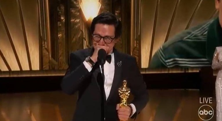 關繼威在台上致謝時一度爆喊(視頻截圖) 今次關繼威是繼1985年已故美籍越南華裔男星吳漢勇奪最佳男配角之後,第二位獲奧斯卡的華裔男星。首次獲提名的關繼威擊敗多位演員包括《伊尼舍林的女妖》(The Banshees of Inisherin)的Barry Keoghan、Brendan Gleeson、《攜步渡水橋》(Causeway)的Brian Tyree Henry以及《法貝曼:造夢大師》(The Fabelmans)的Judd Hirsch奪獎。關繼威上台領獎時表現激動,在台上致謝時更一度爆喊。查實之前關繼威已憑《奇》橫掃金球獎以及美國演員公會獎等多個頒獎禮共63個獎項。