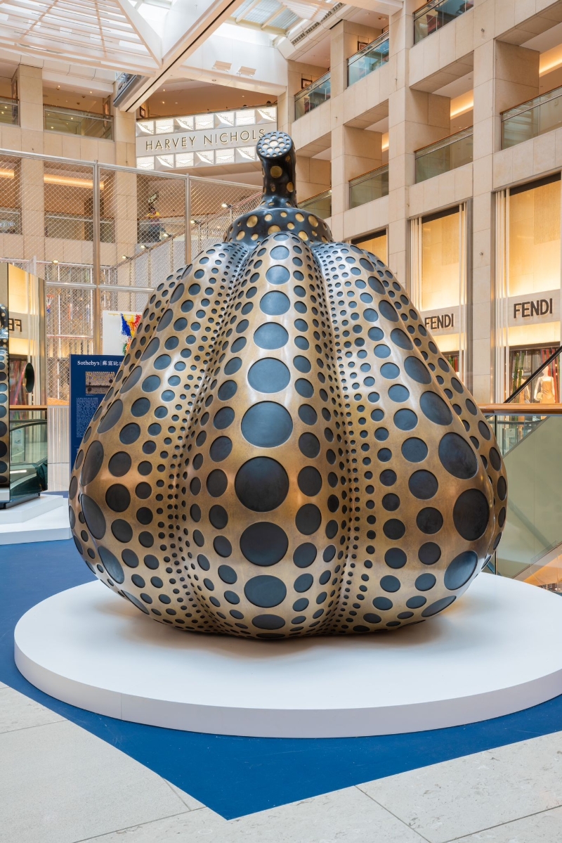 草間彌生藝術裝置在置地廣場展出(圖片:蘇富比) 此兩件作品由即至3月26日在置地廣場公開展出,其後將於4月5日的蘇富比晚拍前夕,移師到香港會議展覽中心展出(4月1日至4月4日)。這場特展適逢香港M+博物館呈獻“草間彌生:一九四五年至今”,是草間彌生在日本以外的亞洲區最大回顧展;而今年她與路易威登攜手推出第二個聯乘系列,從巴黎到洛杉磯的路易威登旗艦店中展示藝術家擬真機器人裝置。