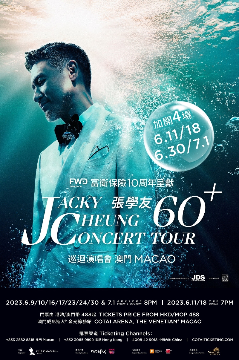 香港新聞網4月25日電 “歌神”張學友將於今年6月9至10日、16至17日、23至24日重臨澳門威尼斯人金光綜藝館,舉行音樂生涯第十個個人巡迴演唱會的首站演出“富衛保險10周年呈獻 張學友60+巡迴演唱會 澳門”。由於反應熱烈,演唱會門票迅速售罄。如此空前盛況,可見“歌神”睽違良久的個人巡演首站已成為全球樂迷注目的焦點所在! 在一眾歌迷殷切期盼下,大會宣佈是次演唱會將於6月11日、18日、30日以及7月1日特別加開4場,以回應歌迷的熱烈支持與期待。 加場門票將於4月27日中午12時公開發售,為方便各地歌迷購票,售票平台將擴展至金光票務、FWD MAX會員尊享購票、BOOKYAY、MPay(mCoin平台)、廣星傳訊、大麥網、貓眼同步發售。