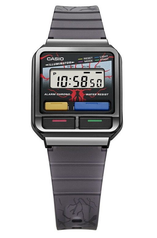 卡西歐A120WEST數字手錶。 新款手錶的設計靈感來自於《怪奇物語》,該劇運用了大量80年代的文化元素。這款手錶以具有卡西歐80年代數字手錶風格的A120為藍本,其設計旨在向與人類世界平行存在的另一維度“顛倒世界”致敬。 腕錶表面描繪了《怪奇物語》中的人物世界,正面繽紛多彩的流行設計按鈕喚起人們對20世紀80年代的記憶,中間圖案則是在劇中的人類世界出現的怪物Demogorgon。按下LED燈按鈕時,會看到是字體顛倒的劇名,暗示另一個世界的存在。錶殼背面和半透明的表帶,則被設計成從冥界延伸出來的陰森觸角,喚起了兩個世界之間的關聯。 【編輯:黃璇】