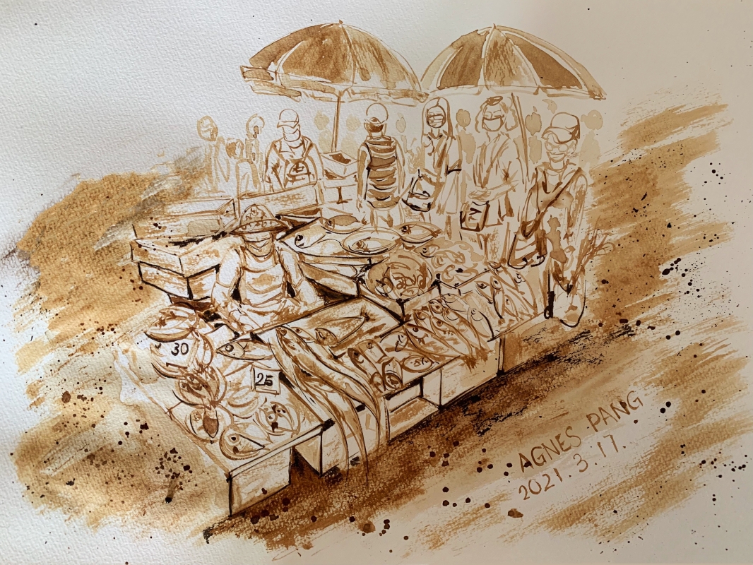 “LoveHK”展覽與本地多媒體藝術家彭淑儀(Agnes)合辦。 廢物轉化再生藝術品 推動綠色生活 香港是一個充滿活力和多元文化的國際都市,環保意識亦逐漸滲透到生活當中。一直致力推行環保藝術的藝術家彭淑儀 (Agnes), 以獨特的創作方式,運用生活中不顯眼的廢棄物件融合細緻的畫功,進行藝術創作,呈現出香港各種面貌。 是次展覽分爲五部分:“海岸美景”、“香港生活”、“行到邊畫到邊”、“大嶼海岸”及“香港是我家”:“海岸美景”系列:以咖啡過濾紙作畫布,加上水墨畫技法將香港沿海地方,如三門仔、長洲和中環等的風景細節和氛圍表現得淋漓盡致; “香港生活”系列:以咖啡渣繪畫香港日常生活場景,如茶餐廳、魚市場和肉食檔等,讓觀眾彷佛置身於香港的街頭巷尾; “行到邊畫到邊”系列: Agnes喜歡隨身攜帶紙和筆,利用速寫的方式描繪她所到之處,包括大街小巷和旅遊景點等; “大嶼海岸”系列:運用了酒塞的特質和紋理表達石頭和泥土的天然質感,演繹出大嶼山的自然美景; “香港是我家”系列:在帆布上以蔬果網拼貼出香港建築物,並以塑膠彩繪製作藍天白雲的背景,展示城市獨有的天際綫。