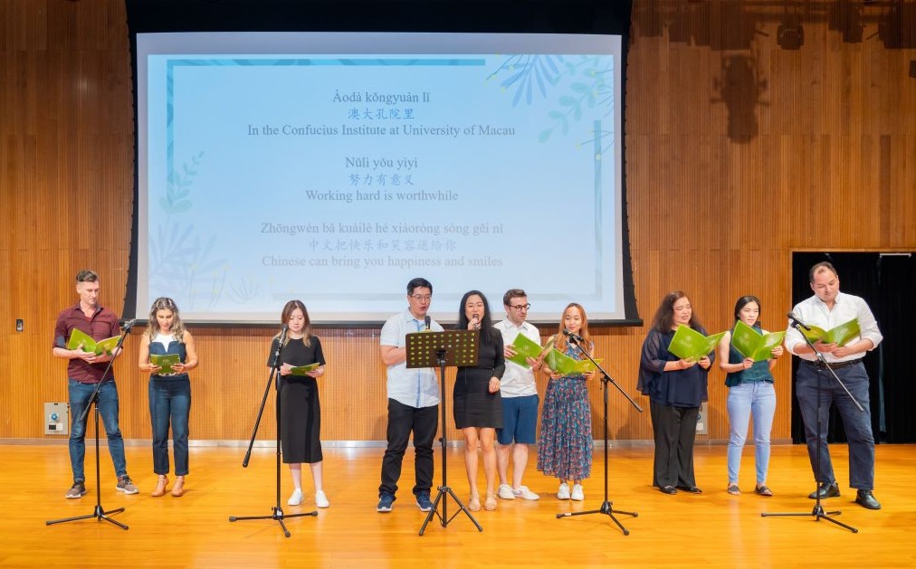 結業演出。(圖片:澳門大學) 澳大孔子學院表示,自2018年開課以來,已經培養了900多名畢業生,為非中文母語者提供高質量的漢語教學和豐富多彩的文化交流活動。另外,澳大孔子學院於2021年加入粵港澳大灣區孔子學院(國際中文教育)聯盟,積極參與聯盟舉辦的活動,並與葡語國家和地區的孔子學院合作,促進葡語國家和地區的區域協作發展。 澳大孔子學院副院長陳忠教授和120多名師生出席典禮。初級漢語II班的司傑軒和高級漢語班的柯麗妮代表畢業生發言,分享了學習漢語的收穫,並感謝老師們的教導和關懷。現場還頒發了全勤獎和最佳學員獎,表揚他們的優秀表現。