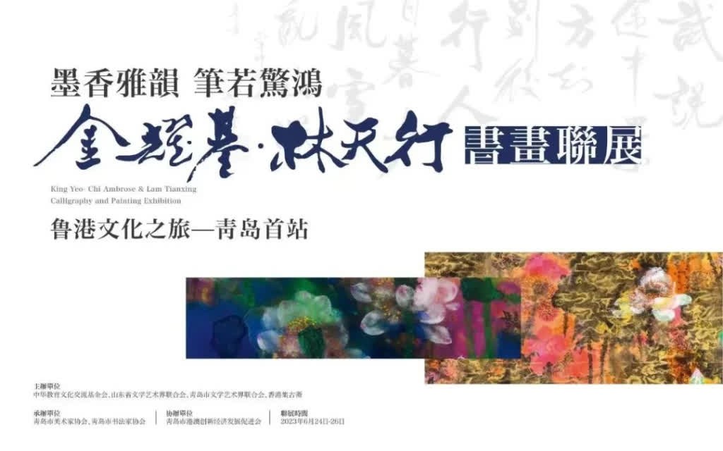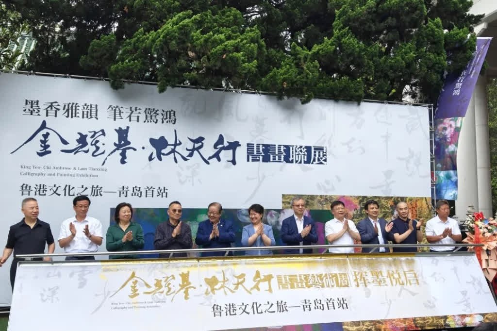 主禮嘉賓共同主持開幕活動。(圖片:主辦方提供) 今次書畫作品聯展通過兩位藝術家近年來創作的精品力作,將香港藝術創作所獨具的美學價值和文化內涵呈現在廣大青島市民面前,為大家帶來新鮮的藝術啟迪和獨特的美學享受。同時,通過書畫藝術深化青港兩地經濟文化等多領域合作,推動青港雙城友誼結出更加豐碩的成果。 今次書畫聯展在青島市美術館舉辦,展覽舉行至6月30日,免費向公眾開放。其間金耀基、林天行親臨藝術沙龍、親子書畫沙龍等活動,與觀眾交流,更有形式豐富的中古珠寶鑒賞沙龍、觀眾書畫體驗工作坊、漢服打卡等活動。 展覽由香港中華教育文化交流基金會、山東省文學藝術界聯合會、青島市文學藝術界聯合會、香港集古齋聯合主辦。 【編輯:黃璇】