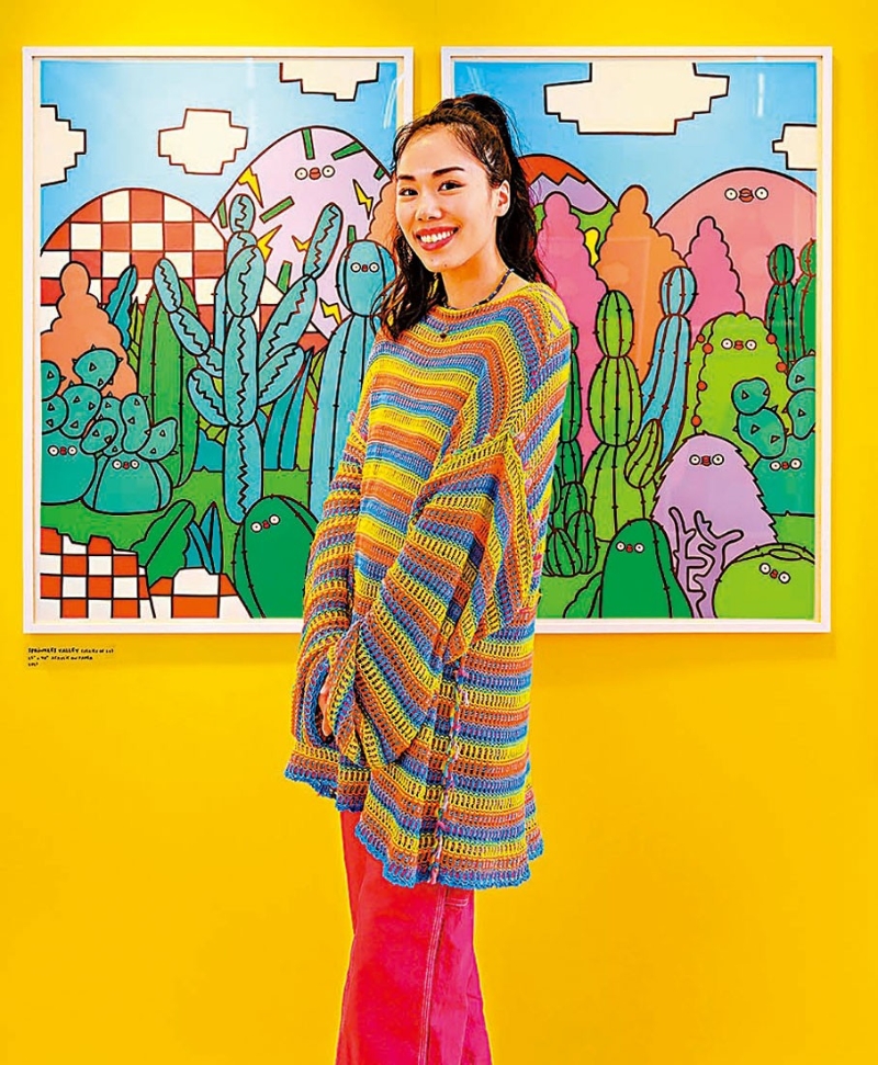 現場有一隻4米高的粉紅恐龍木雕,充滿童趣。 Ton曾在各大城市舉辦超過15場Flabjacks展覽,包括首爾、北京、上海、馬尼拉等。她也曾與多個品牌聯乘合作,歷經多國展出後,是次在香港的首場個人展覽別具意義,她選擇以“WELCOME HOME”作為主題,表達自己回到香港的心情。雖然對Ton而言,“家”仍然是一個抽象的概念,但大自然帶給她一種舒適、安寧的感覺,平淡而幸福,因此她從自然環境中取得靈感,創作以黑夜森林和閃爍星空為背景的畫作,用鮮艷的色彩和生動的筆觸描繪自己心中的大自然,希望藉此讓觀眾產生對“家”的共鳴。 今次絕大部分作品是第一次公開展出,而兩個新加入的角色更是帶有特殊意義——恐龍是Ton在懷孕期間創作的角色,而老虎則代表她屬虎的兒子。Ton形容新角色充滿魔力,不斷探索着世界。是次展覽由William Chan Design (HK) Limited策劃,將同時限量發售一系列精美產品,包括藝術玩具、帆布袋和保暖毛毯。 Flabjacks“WELCOME HOME”藝術展@海港城 日期:即日起至7月16日 時間:上午11時至晚上10時 地點:海港城美術館 (海港城海洋中心二階207號舖) 【編輯:黃璇】
