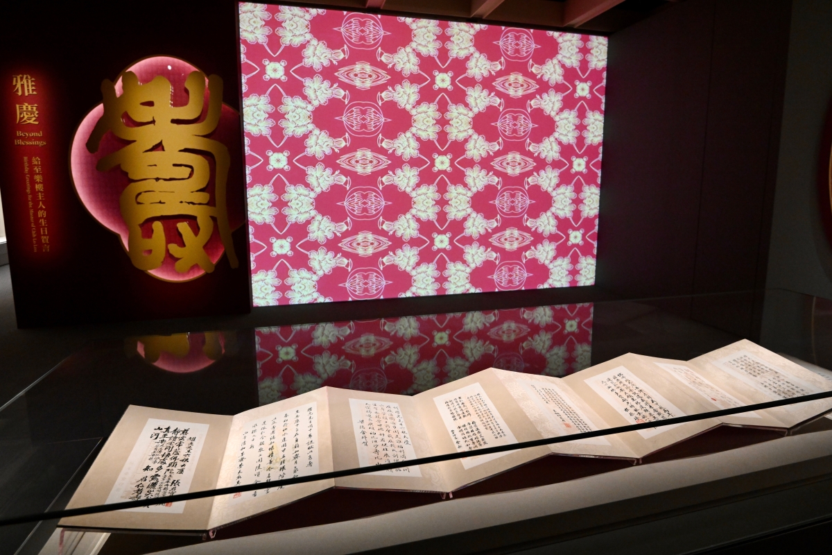“雅慶——給至樂樓主人的生日賀言”展覽在香港藝術館舉行。圖為何耀光兒女從文壇徵集詩文而成的冊頁。(圖片:政府新聞處) 已故鑑藏家何耀光以保存國粹、弘揚書畫藝術為宗旨,建立至樂樓藏中國書畫。他一直與在香港的文人有密切交往,並且大力贊助文化活動。藝術館以何耀光的生日為主題,在藝術館四樓至樂樓藏中國書畫館推出“雅慶——給至樂樓主人的生日賀言”新展覽,展出31組精選自何氏於1966年六十大壽時文化界及商界好友例如張大千、黃般若、梅與天、何叔惠等,為其賀壽而創作的書畫作品。觀眾亦可欣賞到其兒女從文壇徵集的詩文,了解上世紀五六十年代香港文人及書畫圈的盛況。