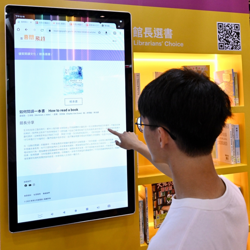 香港新聞網7月19日電 香港公共圖書館今年繼續參與香港書展,向市民介紹圖書館豐富的電子資源館藏及推廣優質閱讀文化。 香港公共圖書館的展覽攤位設於一樓展覽廳1C內的A28,以“閱讀/生活再發現”為主題,鼓勵大眾特別是年輕人將閱讀融入生活中。攤位設有觸控顯示屏和平板電腦,讓市民試用公共圖書館的電子資源,體驗網上閱讀的便捷。另外,市民可在攤位的“館長選書”專區閱覽圖書館館長推介的優質讀物及他們的讀後感,發掘不同主題的好書。