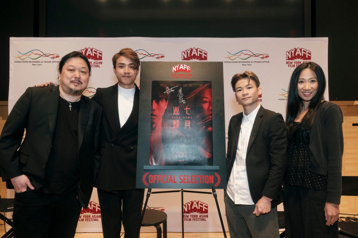 香港駐紐約經濟貿易辦事處處長聶繼恩(右起)、《七月返歸》導演謝家祺、江𤒹生和紐約亞洲電影節執行總監Samuel Jamier出席記者會。 香港駐紐約經貿辦處長聶繼恩在記者會上向當地傳媒介紹江𤒹生和謝家祺。她說:“謝家祺和江𤒹生是香港新生代藝術人才。他們努力嘗試將更多不同類型的電影片種帶給觀眾。《七月返歸》獲香港電影發展局電影製作融資計劃(放寬版)的支持,這是業界、市場和政府三方協作的極佳例子。”