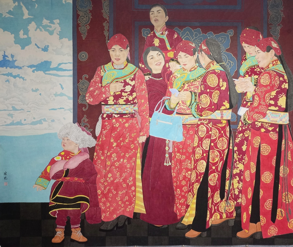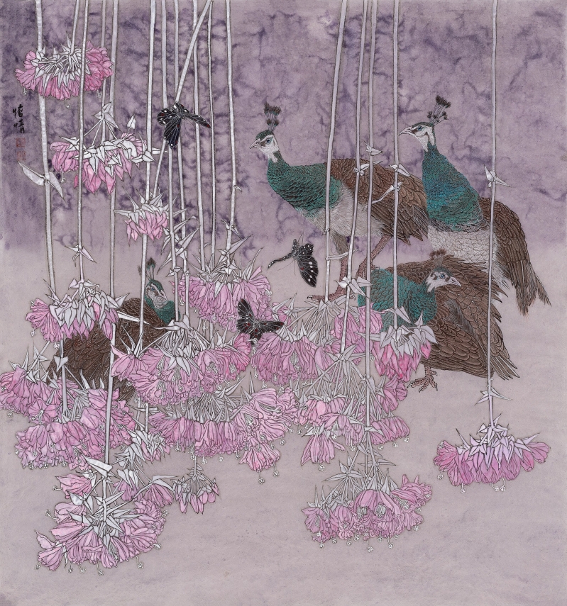 鄭瓊瑤作品《覺乃族的幸福新天》。 惦情 惦情原名廖瓊,號清涵,祖籍湖南,生於1976年,香港女畫家,師從香港著名畫家劉欽棟,現為中國美術家協會會員、中國女畫家協會會員、中國工筆畫協會會員、香港美協會員。