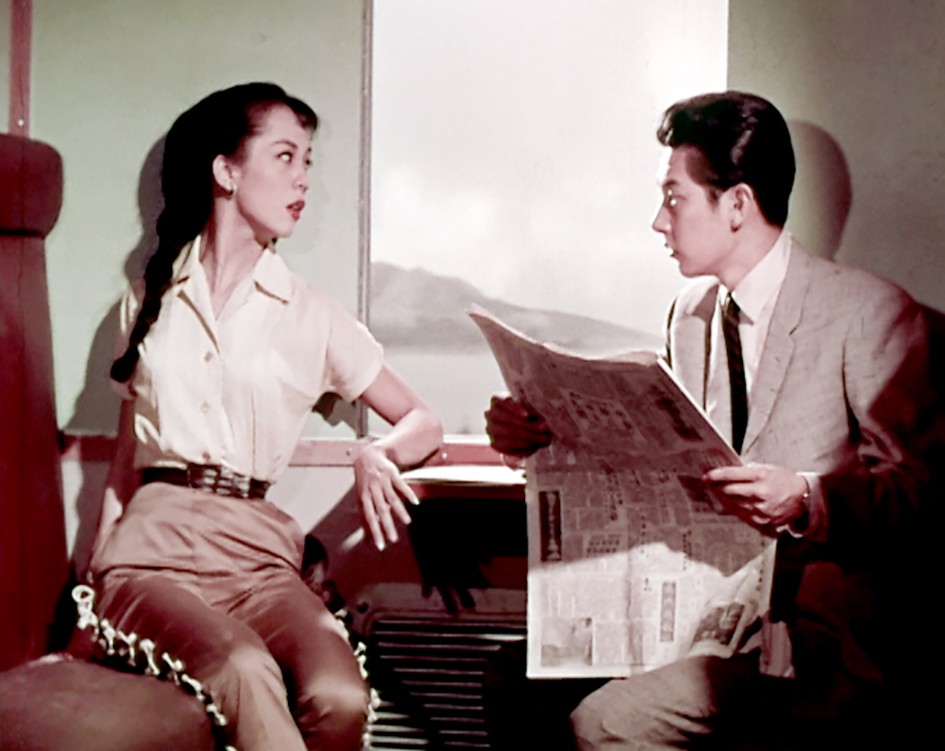 《玉女驚魂》(1958)劇照。 《青春兒女》(1959)是由“曼波女郎”葛蘭和“學生情人”林翠主演的大學校園青春片。葛蘭在電影中展露歌舞才華,並演繹崑劇《牡丹亭》之〈春香鬧學〉,林翠則飾演運動健將,盡展少女活力。 《我的愛人就是你》(又名《蘭閨情深》)(1967)以劉家三姊妹與凌家三兄弟之間的愛恨糾纏為主軸。蕭芳芳飾演的劉家三妹活力四射,卻因一時衝動釀成悲劇。擅拍古裝戲曲片的導演珠璣執導時裝片同樣出色,將輕歌曼舞糅合姊妹情深的主題,亮眼動人。 《蔓莉蔓莉我愛妳》(1969)由經典銀幕情侶呂奇和陳寶珠主演,既講述深刻動人的愛情故事,亦描寫角色之間的真摯友誼。電影歌舞連場,主題曲更是一曲兩唱,陳寶珠和呂奇演唱的版本互相呼應,盡顯心思。