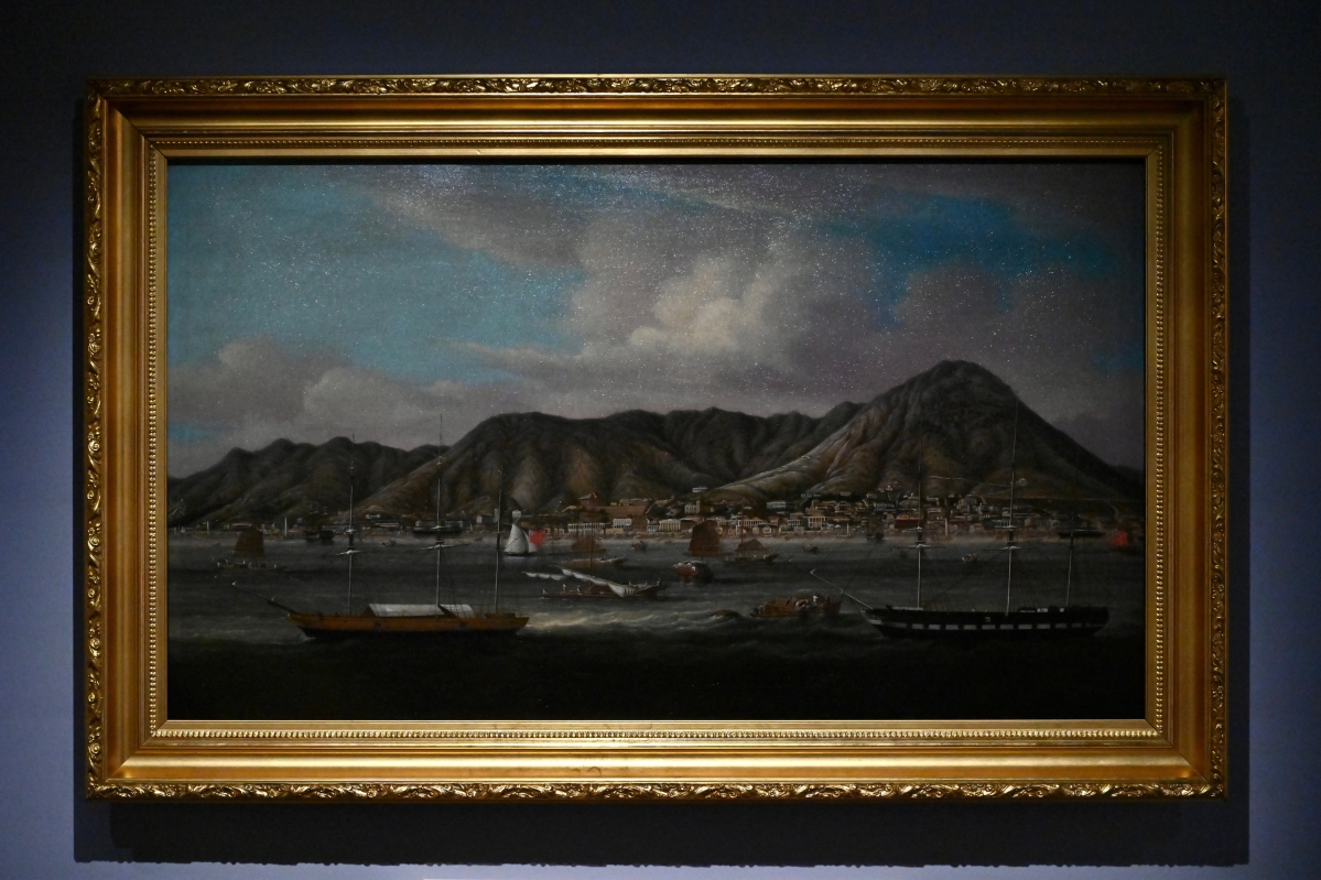 十九世紀外銷畫家的油畫作品《維多利亞城遠眺》。(香港藝術館藏品) 今次展出的珍貴藏品包括外銷畫、銷往海外的精美絲織製品如提花織物、手繪絲綢和刺繡絲綢、服裝飾物及家居織物等,分別於“灣區舊貌”、“絲綢外銷”、“絲綢換白銀”和“今日灣區”四個部分展示。精選展品包括19世紀繪畫粵港澳地區面貌的油畫作品《維多利亞城遠眺》、《濠江漁歌》和《廣州十三行商館》;三件屬國家三級文物,包括清代的白地絲綢手繪花鳥壁紙、廣東彩元繡莊的廣繡八仙賀壽圍屏和紅緞地三藍繡花蝶補服女褂。還有19世紀漆木描金縫紉台,以及1940至60年代戲服黃地金銀密片車裝等。 為配合展覽,香港藝術家林春菊在展廳外創作全新場域特定裝置作品《那時——彼岸》,以時裝設計視點出發,在館內打造一個穿梭過去、當下、未來的工作室,並展示全新的服裝作品,重塑經典。香港藝術館並首次與香港理工大學時裝及紡織學院、CAFI研究團隊及數碼時尚的學生合作,在展覽中採用擴增實景及虛擬實景技術多角度展示展品,透過藝術與科技結合,邀請觀眾以虛擬方式穿上傳統華服參與跨時代的時裝秀。 “三城記——明清時期的粵港澳灣區與絲綢外銷”展覽 日期:即日至12月17日 時間:上午10時至下午6時(周一至三、周五)、上午10時至晚上7時(周六至日、公眾假期)、周四休館(公眾假期除外) 地點:香港藝術館3樓中國文物廳(九龍尖沙咀梳士巴利道10號) 費用:免費 【編輯:黃璇】