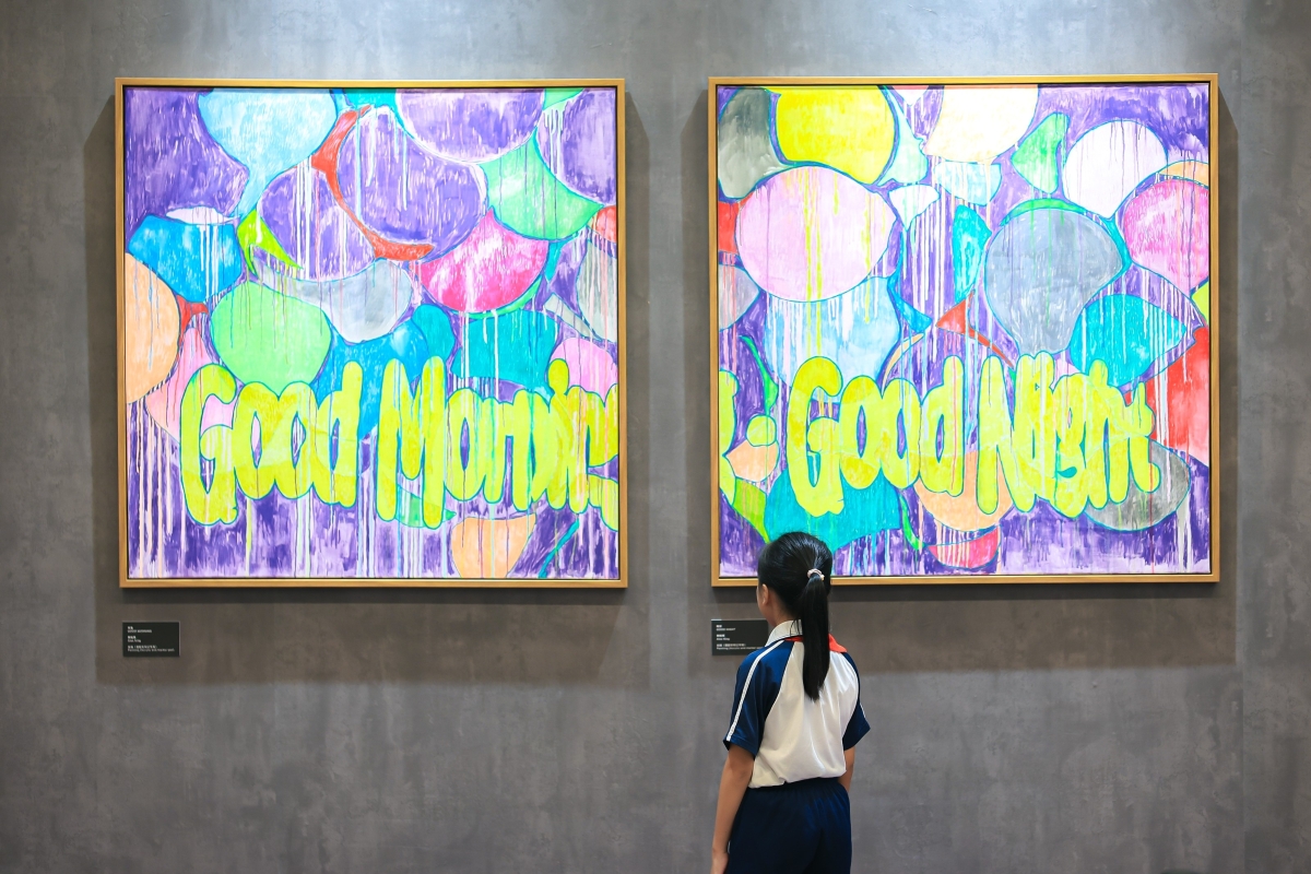 香港藝術家陳鈞樂的作品《流浪者之歌》。 設計師荊培育把觀察的視線轉向煩囂的城市。他的繪畫作品《雨後,似有彩虹》,以當代塗鴉風格將街上障礙物轉化為彩色氣球,呈現內心雨後彩虹的景象,表達他的人生感悟和生活期盼。