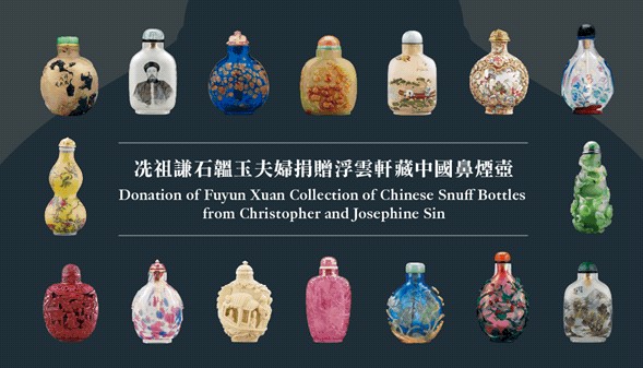 香港藝術館近日獲已故香港收藏家冼祖謙遺孀石韞玉捐贈近500件浮雲軒藏中國鼻煙壺作永久館藏。 浮雲軒為重要的香港私人收藏,由冼祖謙於1989年建立,其國際地位舉足輕重。是次捐贈精選冼祖謙畢生珍藏鼻煙壺,涵蓋各種器型、材質、樣式與工藝,品類眾多,極具代表性,體現中國工匠精巧絕倫的手藝及創意。