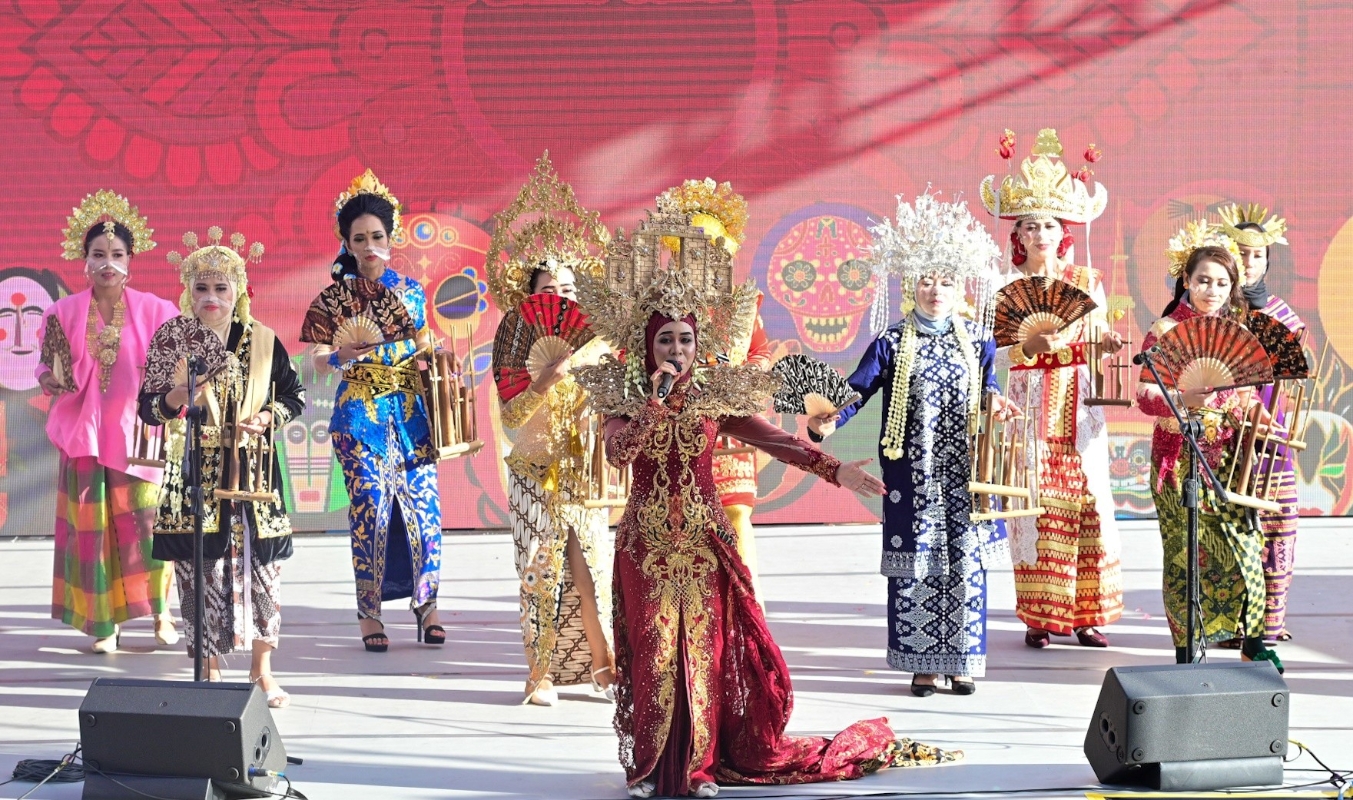 圖為印尼伴娘頭飾。 市民亦可欣賞到哈薩克斯坦傳統樂器冬不拉和蒙古的馬頭琴演奏和多個地方的手工藝品展示;一家大小朋友亦歡迎即場參與斯里蘭卡傳統鼓和韓國擴香包工作坊。 此外,香港文化中心大堂將在本月12日至19日舉辦“花冕霓裳——民族服裝頭飾展”,一連八日展示亞洲各地人民在節慶活動、歌舞表演等場合穿着的服裝和頭飾,繽紛多彩。 參與今年活動的國家及地區共有23個,分別是中國香港、中國澳門、孟加拉、柬埔寨、印度、印尼、日本、哈薩克斯坦、韓國、科威特、老撾、馬來西亞、尼泊爾、蒙古、巴基斯坦、菲律賓、卡塔爾、沙特阿拉伯、新加坡、斯里蘭卡、土耳其、阿拉伯聯合酋長國和越南。“亞藝無疆”藝術節網站:www.lcsd.gov.hk/asiaplus。 【編輯:黃璇】