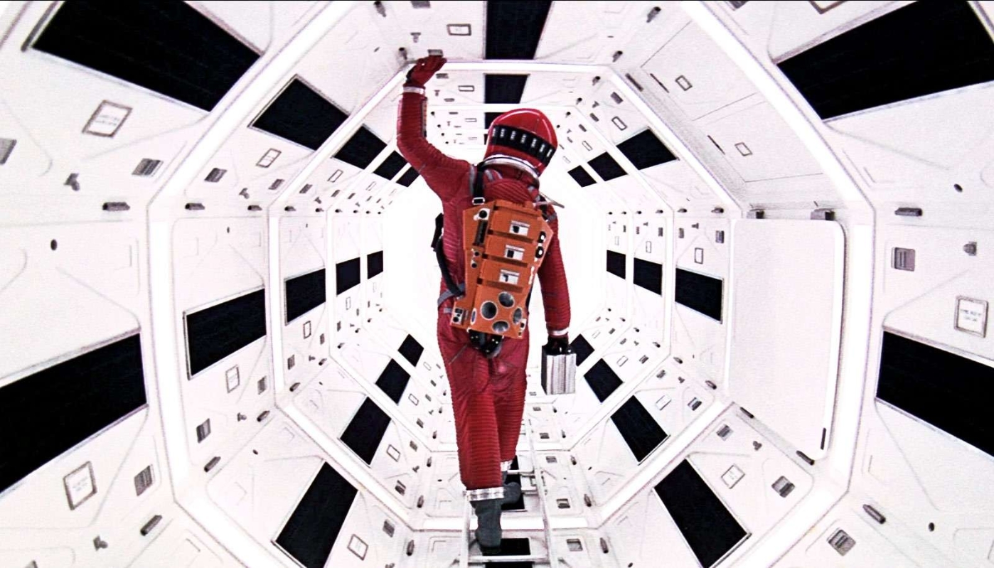 《2001太空漫遊》劇照。 另有探討人造生命題材的作品:《科學怪人的新娘》(1935),從怪物的孤獨探討複雜人性,是被公認為電影史上續集更勝首集的例子;《智能叛侶》(2015)講述機械人艾娃擁有自我意識,在秘密、試探與謊言之間,揭示人類面對人工智能的不安與疑慮;還有法國動畫新作《火星號列車》(2023)亦以人類及機械人之間的矛盾為引子,講述人類移居火星,死者靈魂可被複製到機械人身上,以豐富想像建構一個目不睱給的未來世界。 選映作品亦有以生死為題。《平步青雲》(1946)講述主角因天使看漏眼在炮火中奇蹟生還,卻因此要在天上的法庭為自己在凡間續命而爭辯。是枝裕和早期作品《下一站,天國》(1998),講述離世者可以帶着生前最珍貴的回憶前往天國,透過想像力描寫最不捨的感情。