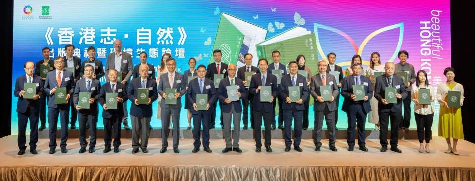 眾嘉賓共同主禮《香港志.自然》出版典禮儀式。 香港特別行政區環境及生態局局長謝展寰,中央人民政府駐香港特别行政區聯絡辦公室宣傳文體部副部長張國義,全國人民代表大會常務委員會香港特別行政區基本法委員會副主任黃玉山,香港地志中心編審委員會首席召集人李焯芬、香港特別行政區政府行政會議非官守議員暨碳中和及可持續發展委員會主席林正財,香港賽馬會董事楊紹信,以及團結香港基金主席暨香港地方志中心主席陳智思等多位嘉賓共同主禮《香港志.自然》出版典禮儀式。中華人民共和國生態環境部部長黃潤秋,中國地方志工作辦公室主任崔唯航發表視頻致辭,慶賀志書出版,並寄望共同推進“美麗中國”和“美麗香港”的建設。 團結香港基金主席暨香港地方志中心主席陳智思致歡迎辭時呼籲大家促進環境保護、推動綠色轉型的同時,能夠將香港獨特的優勢加以推廣,讓更多人了解香港、喜歡香港,來香港旅遊、經商,領略香港的非凡魅力。 中華人民共和國生態環境部部長黃潤秋發表視頻致辭,分享三項建議:一是充分發揮香港獨特優勢,積極打造美麗中國先行區;二是聚焦“重要支撐”策略定位,積極參與綠色“一帶一路”建設;三是建立更緊密合作的機制,合力推動美麗灣區建設。他又指出:這次《香港志.自然》的出版,充分體現了香港社會各界對生態環境保護的高度重視,向外界展現香港在地緣、生態、文化、歷史等方面與祖國的緊密相連、同根同源、一脈相承。希望香港同胞能利用志書這項優秀中華傳統文化載體,不斷增強家國情懷與凝聚力,積極融入國家發展的大局,實現香港新發展新突破。 香港特別行政區環境及生態局局長謝展寰致辭稱,特區政府一直不遺餘力,在發展經濟的同時,保育香港豐富的生物多樣性。政府將於明年在沙頭角紅花嶺一帶設立第25個郊野公園,並會在北大嶼設立第八個海岸公園。在北部都會區的發展計劃中,積極推進各項自然保育項目,希望達致保育生態、城鄉共融的願景。他期望《香港志.自然》可成為一道橋樑,加深大眾對生態環境的認識,從而鼓勵大家愛護大自然,在日常生活中建立低碳生活習慣,達致“人與自然和諧共生”。 中國地方志工作辦公室主任崔唯航發表視頻致辭表示,《香港志》自然卷資料豐富,圖文並茂,其編修過程集環境、海洋、生態、地質、歷史等相關領域眾家之智慧,體現了一流的專業素養和修志水平,並生動詮釋眾手成志的修志模式。透過這本志書,他相信香港同胞可全面深化對香港優美環境和獨特生態的了解和認知,進一步增強環保意識,牢固樹立綠色發展理念,並由此厚植家國情懷,激發民族自豪感,進而全心投入推動香港經濟社會長期繁榮發展的進程。 《香港志.自然》全書約140萬字,分為五卷四冊,由全港67位專家學者領銜撰寫及擔任評審。《香港志.自然》是有關香港地理與環境的叢書中,從框架、方法以至內容,首次結合自然科學和人文歷史,以全景方式記錄從古至今香港的建置與地區概況、人口、自然環境、自然資源與生態、環境保護與生態保育的發展歷程和演變,亦是迄今為止最客觀、系統、全面疏理本港古今地理與環境演變的系列叢書,儼如香港自然歷史的百科全書。