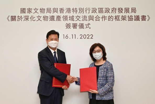 香港新聞網12月13日電 由發展局、國家文物局和澳門特區政府社會文化司聯合主辦的“同一屋簷下:嶺南傳統建築源流與藝術”展覽正式開幕。這是粵港澳三地去年簽訂《關於深化粵港澳大灣區考古及文物建築交流與合作意向書》後首次合辦的展覽。 發展局局長甯漢豪、中國文物交流中心主任譚平、澳門特別行政區政府文化局局長梁惠敏和廣州市文化廣電旅遊局副局長歐彩群主持開幕禮。