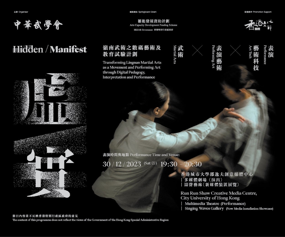 經過兩年推行的“嶺南武術精英培訓計劃”整合了三項嶺南武術拳種,包括林家洪拳、鴻勝蔡李佛及福建永春白鶴拳,並將其發展成新的訓練系統,探索了武術及表演結合的可能性。透過公開招募而甄選出的十二位學員將會以終期表演《虛/實》作為計劃的總結。表演共分三幕,同時邀請多位著名作曲家、編舞家、多媒體藝術家一同參與創作,知名大提琴演奏家及敲擊樂手將聯同學員一起演出,展示武術、表演藝術及藝術科技的完美融合。 除表演外,計劃利用兩個新媒體裝置 – 線性導軌(Linear Navigator)及iDome,將動態捕捉技術所獲得的嶺南武術數據及影像將轉化成新媒體展品。新媒體裝置展覽將於終期表演《虛/實》表演其間起的兩星期假香港城市大學邵逸夫創意媒體中心3樓濤聲藝廊舉行。展品包括以線性導軌(Linear Navigator) 的互動特性去設計一個導航界面,製作一系列兼具解說的動畫,讓觀眾可以在其中探索嶺南武術系統的技術結構和核心原理。另外,四米高、半球體設計的iDome裝置,將展出終期表演《虛/實》第二幕的節錄作品,為觀眾提供個人沉浸式體驗,創造出比實境更豐富體驗的效果。 節目詳情 《虛/實》武術x表演藝術x藝術科技 表演 日期及時間: 2023年12月29日 晚上8時 2023年12月30日 下午2時 2023年12月30日 晚上7時30分(公眾免費場次,需預先登記) 門票:登記免費索取門票,先到先得,額滿即止 (登記:forms.gle/1FvFk27Y3GdiAQQY8) 場地:香港城市大學邵逸夫創意媒體中心1樓多媒體劇場 【編輯:黃璇】