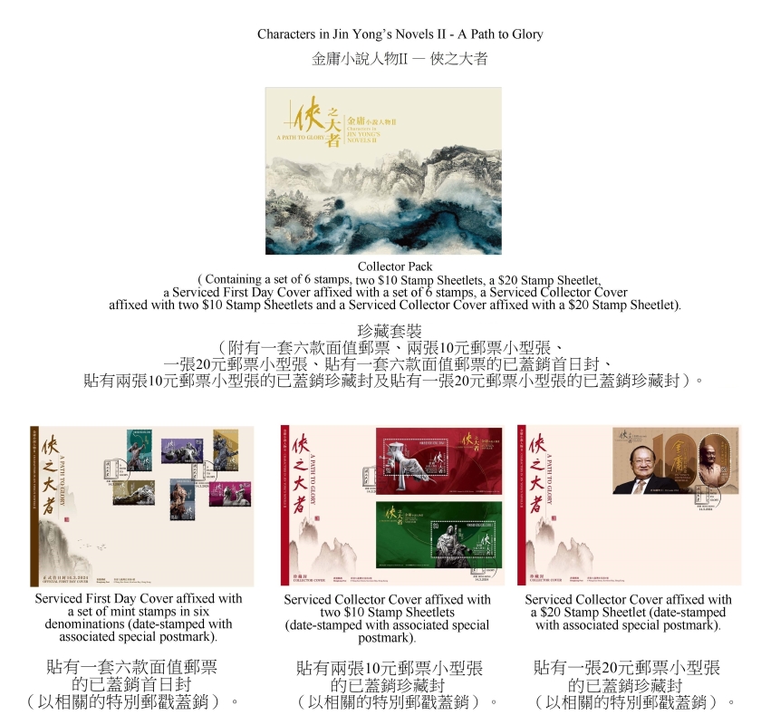 香港新聞網3月1日電 香港郵政將於3月14日(星期四)推出發售一套以“金庸小說人物II——俠之大者”為題的特別郵票及相關郵品。