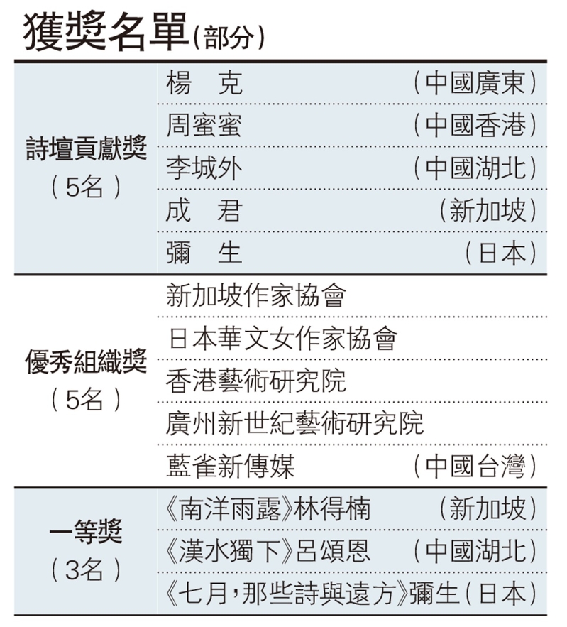 周蜜蜜獲紫荊花詩歌獎詩壇貢獻獎分享到: